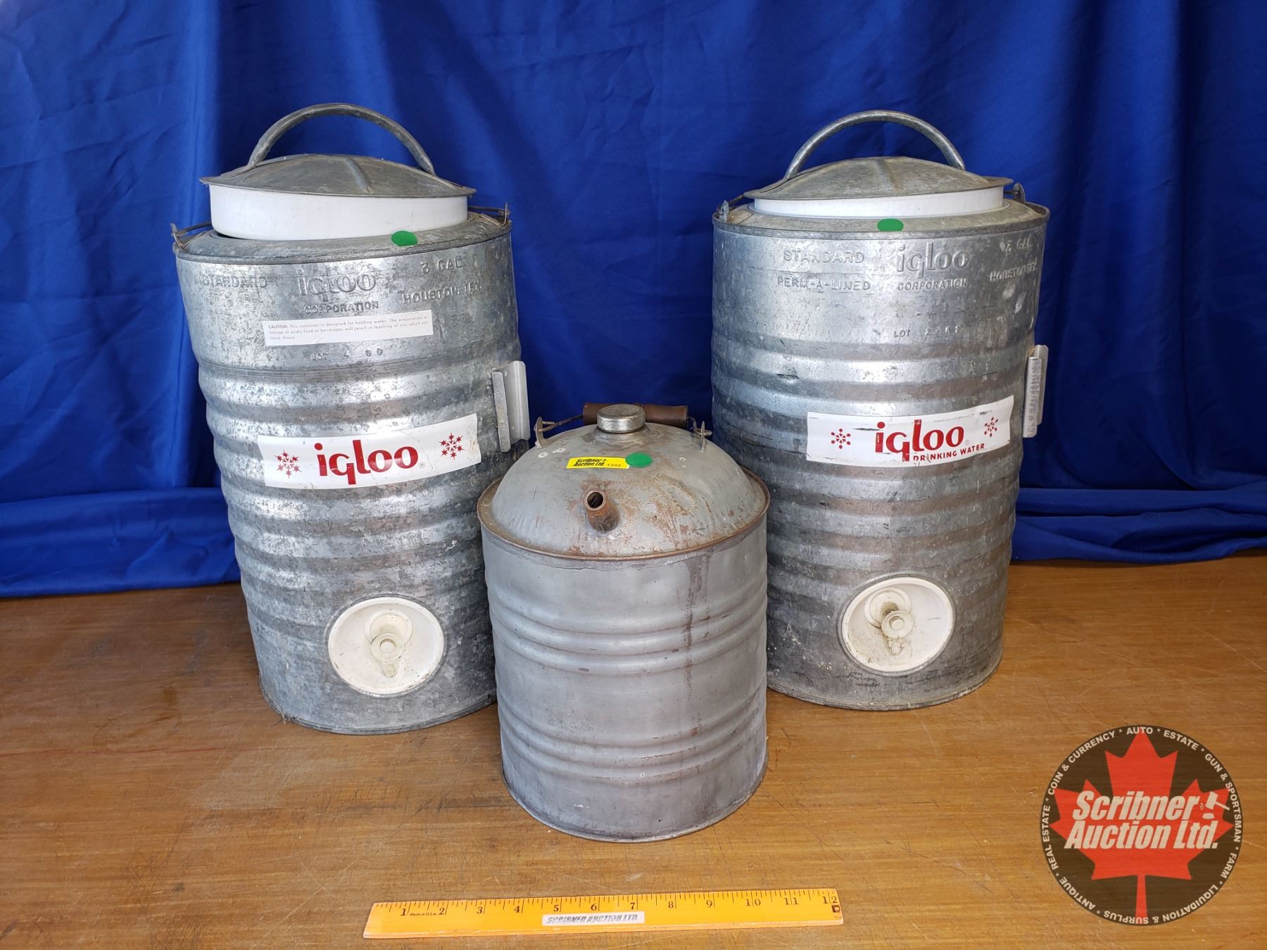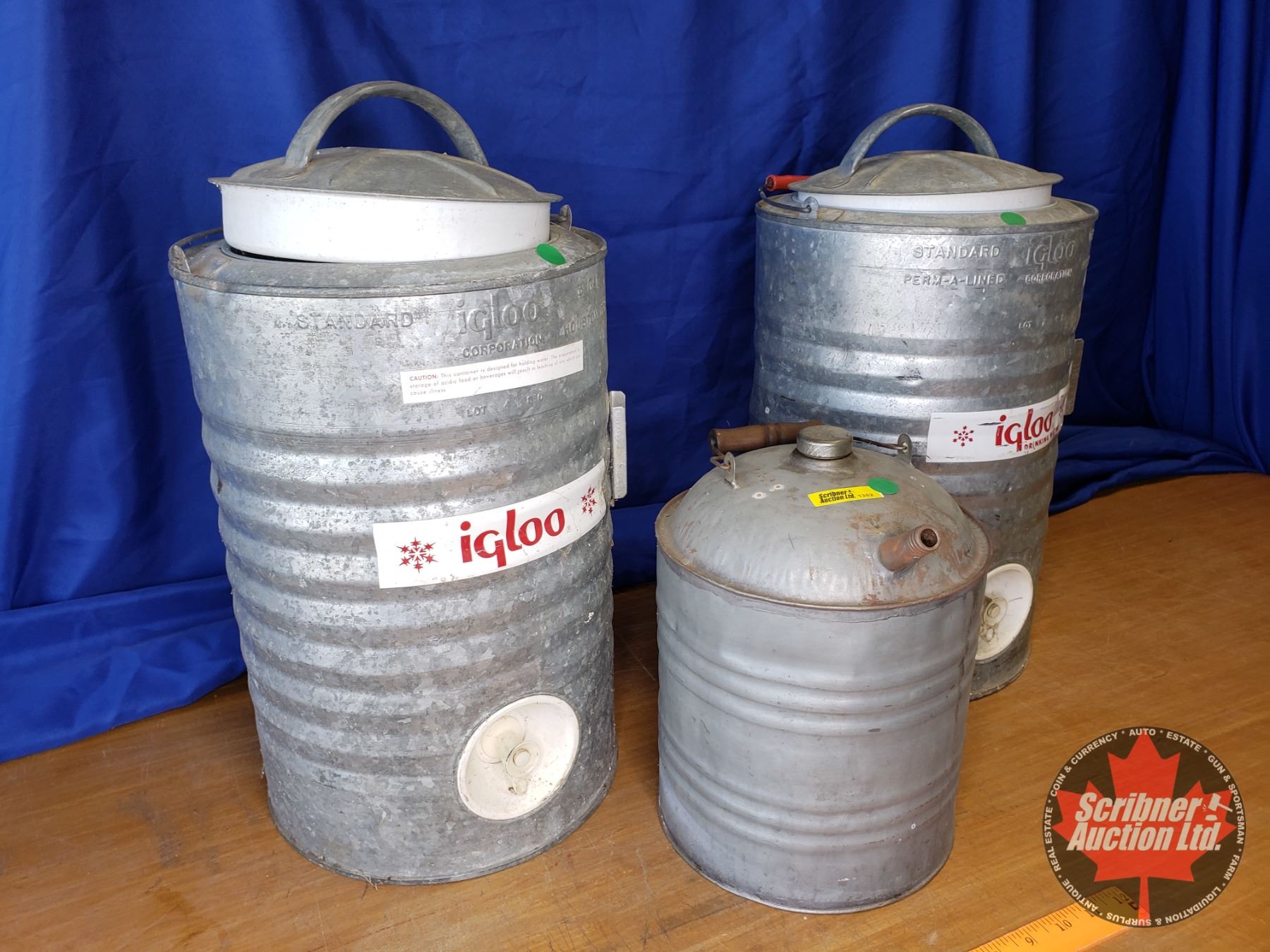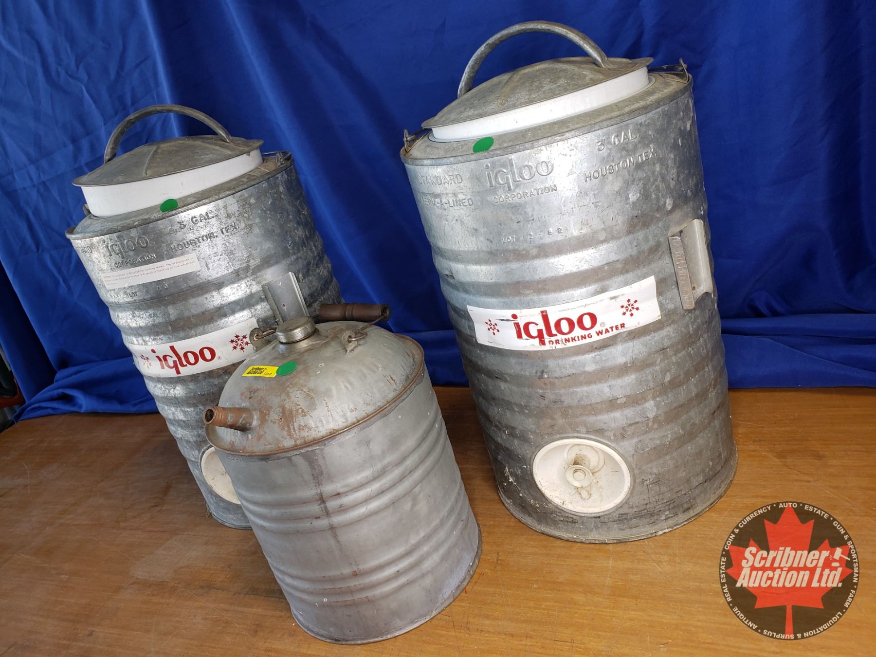 Igloo Galvanized Water Coolers (2) & Galvanized Spout Can