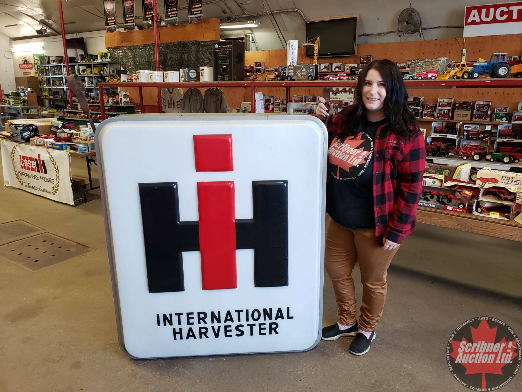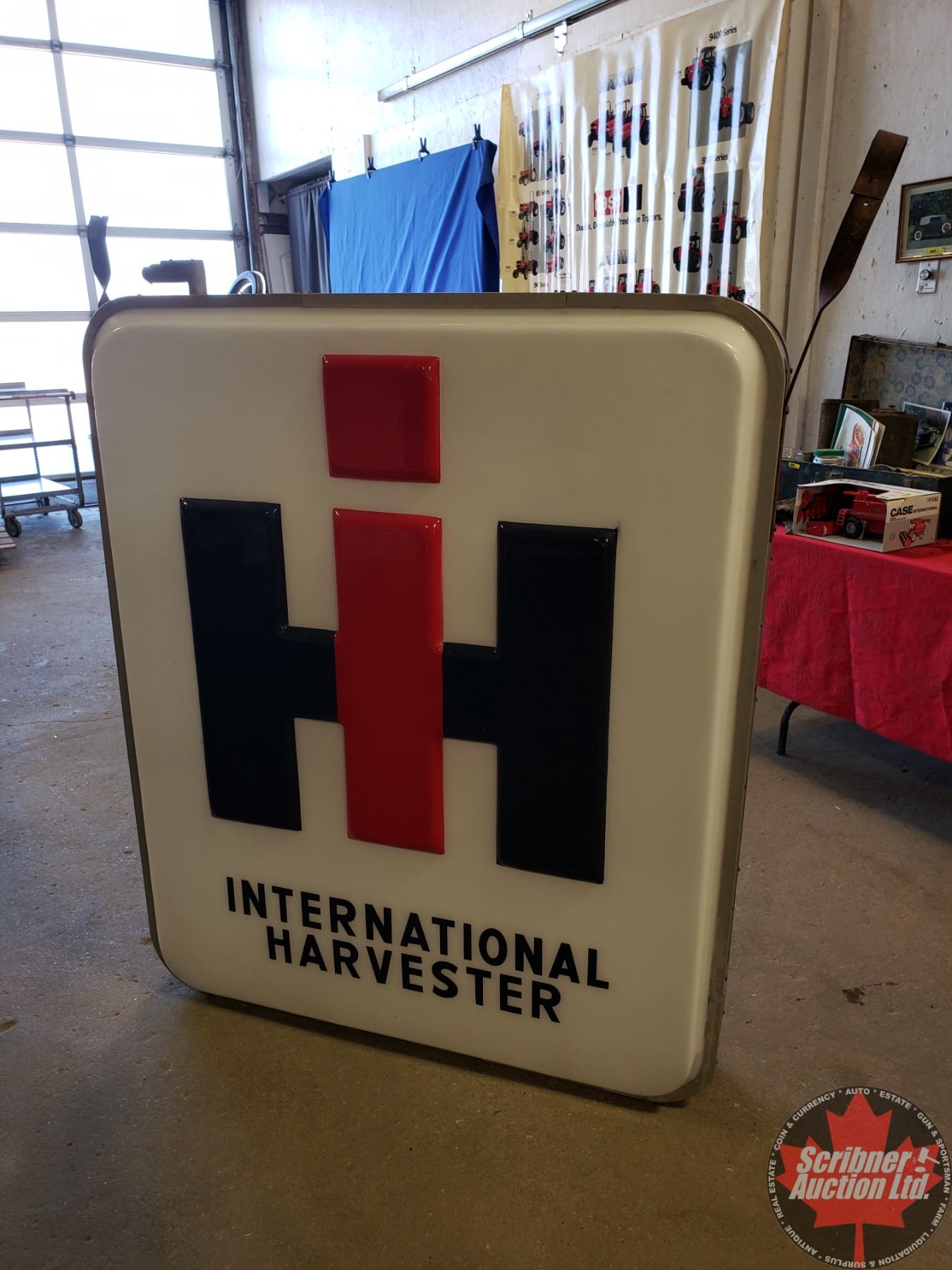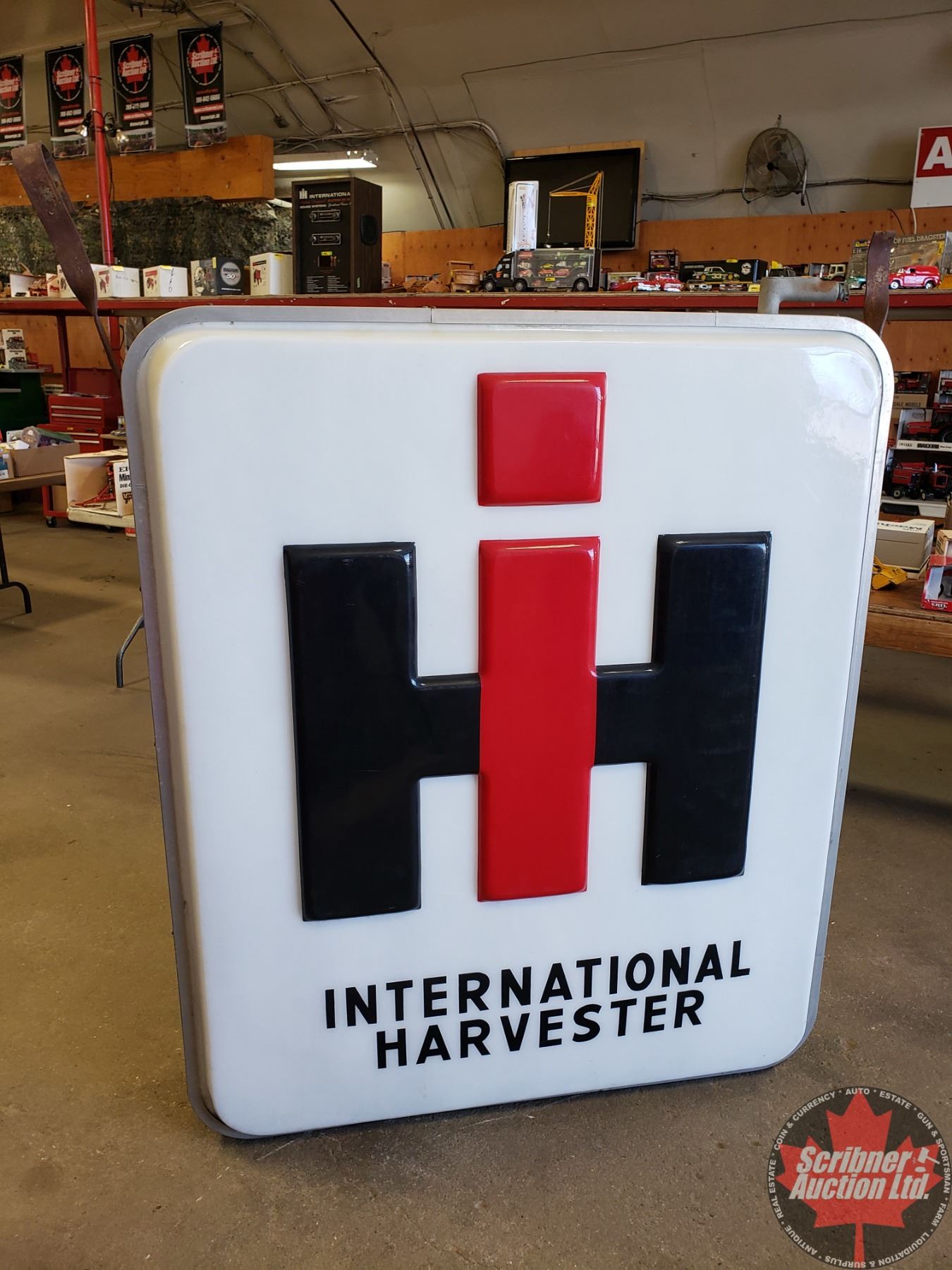 "International Harvester" Double Sided Dealer Sign (w/Brackets - See Pics!) (SIGN Measures 55-1/2"H x 48"W x 10"D)