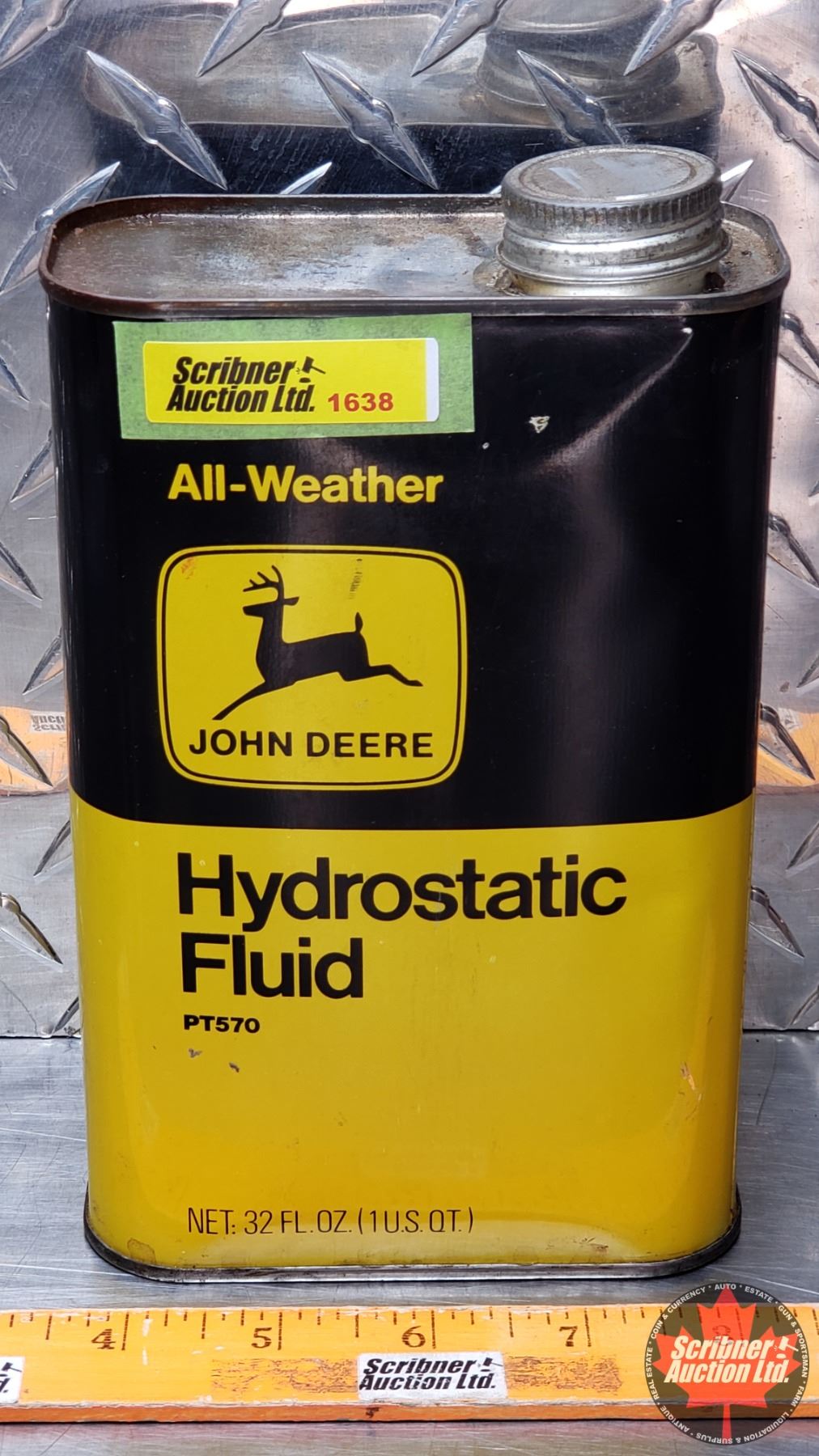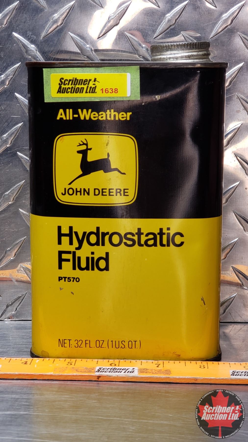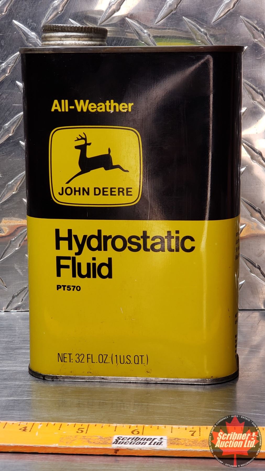 JOHN DEERE All-Weather Hydrostatic Fluid Tin (FULL) (7-1/2"H x 4-1/2"W x 2-1/4"D) (SEE PICS!)