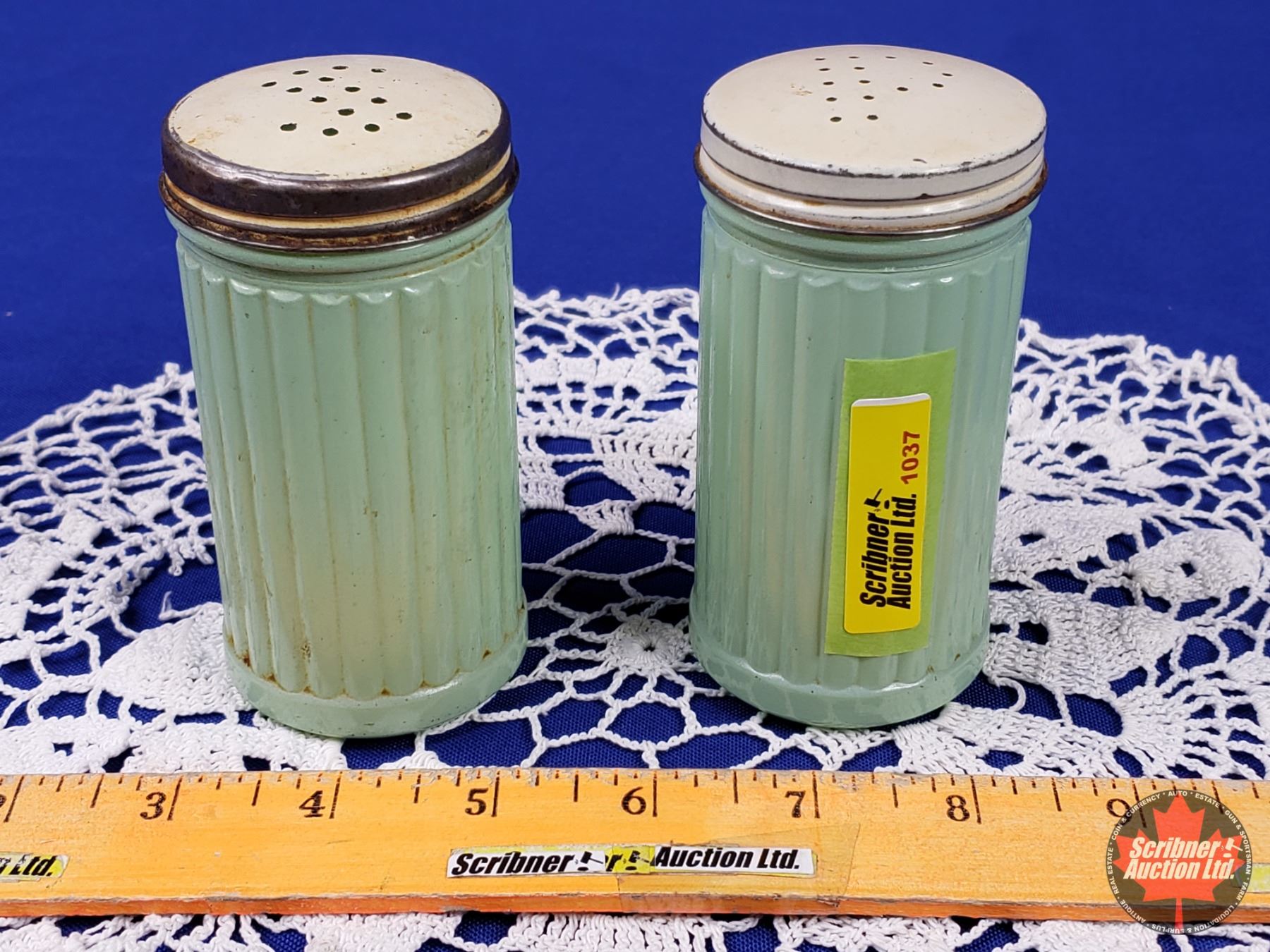 Jadeite Salt & Pepper Shakers (2) (4"H x 2"Dia) (SEE PICS!)