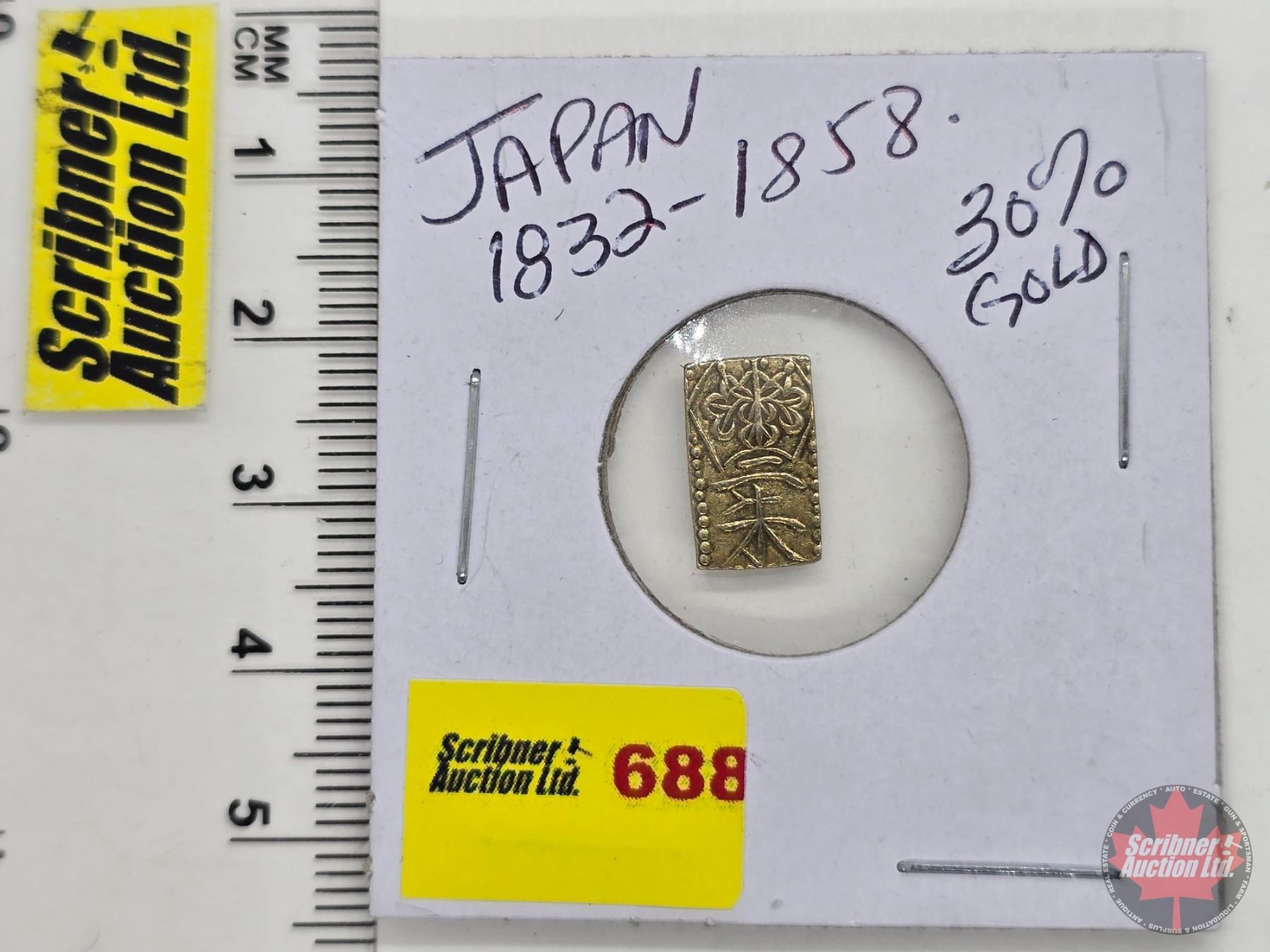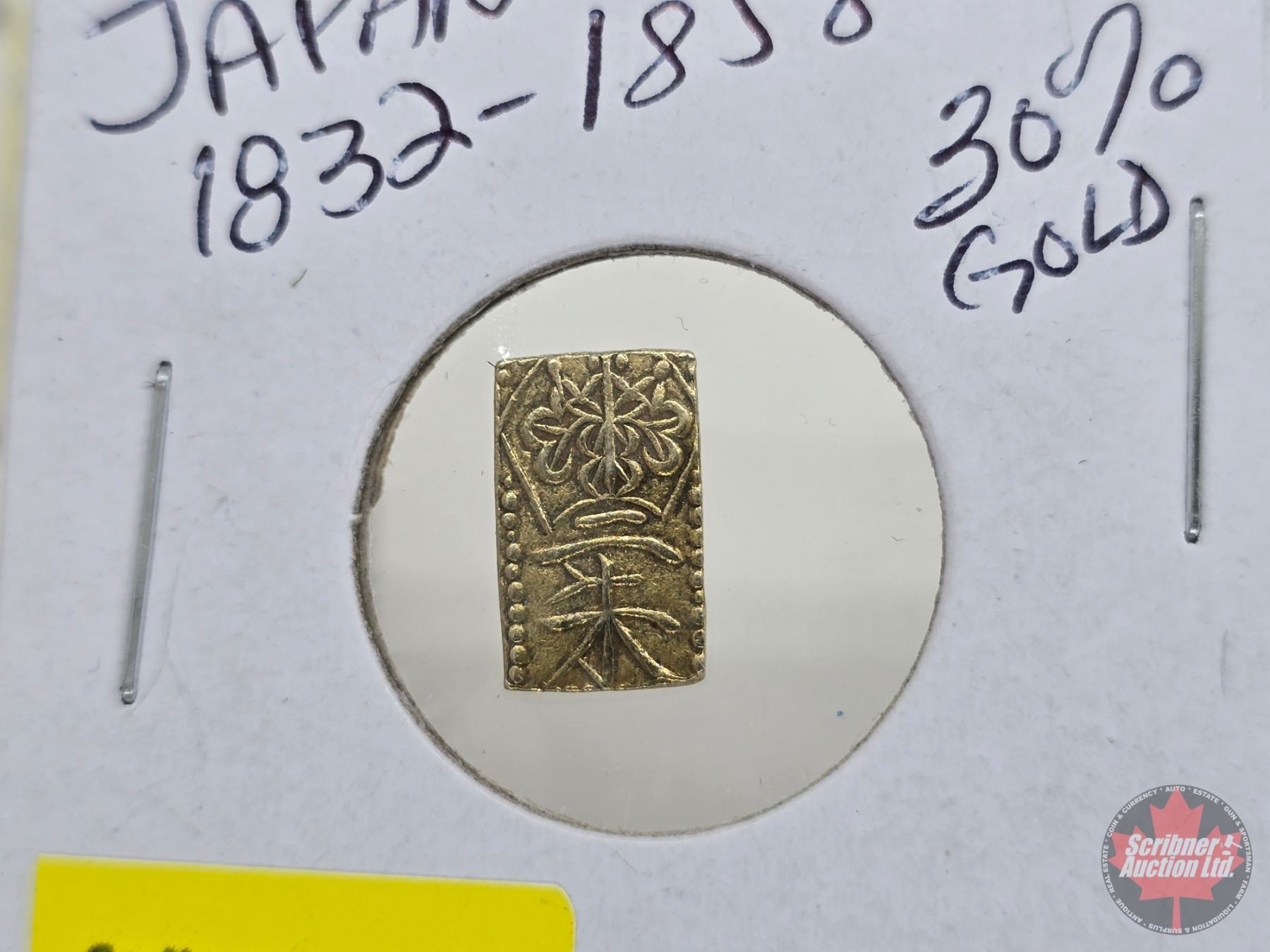 Japan : 2 Shu "Tenpo Nishukin" 1832-1858 (Composition : Gold .298 : Weight 1.64 g : Auction Scale rounds off in pictures) (SEE PICS!) (Listing & Descriptions are a GUIDE ONLY and are subject to changes, errors, additions or deletions. Please use the provided pictures to satisfy yourself to the Condition and/or Grades. Please Read & Understand All Terms & Conditions for this Auction Sale.)