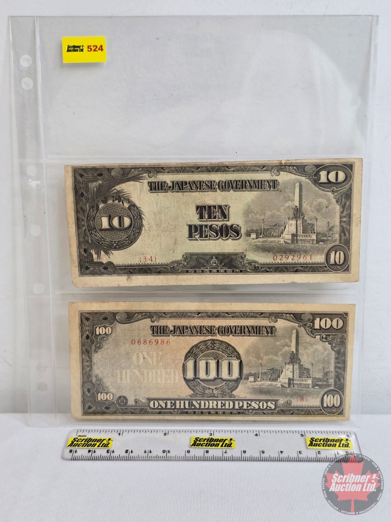 Japanese Government Pesos (2): 10 Pesos & 100 Pesos : War Time