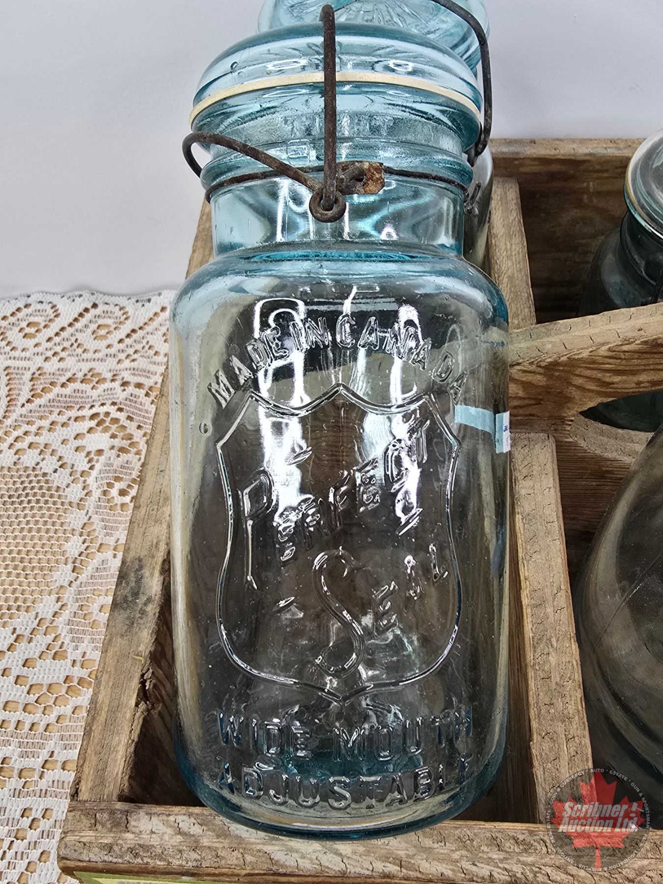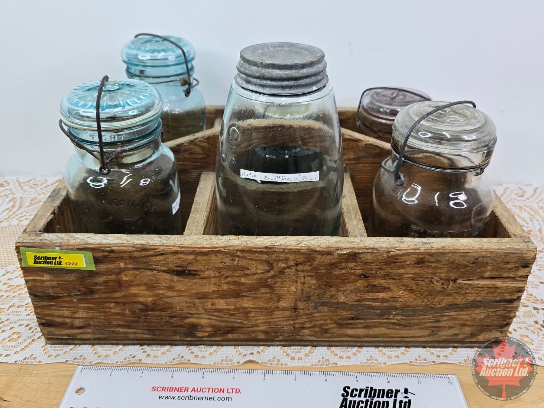 Jars (6) & Wood Carrier