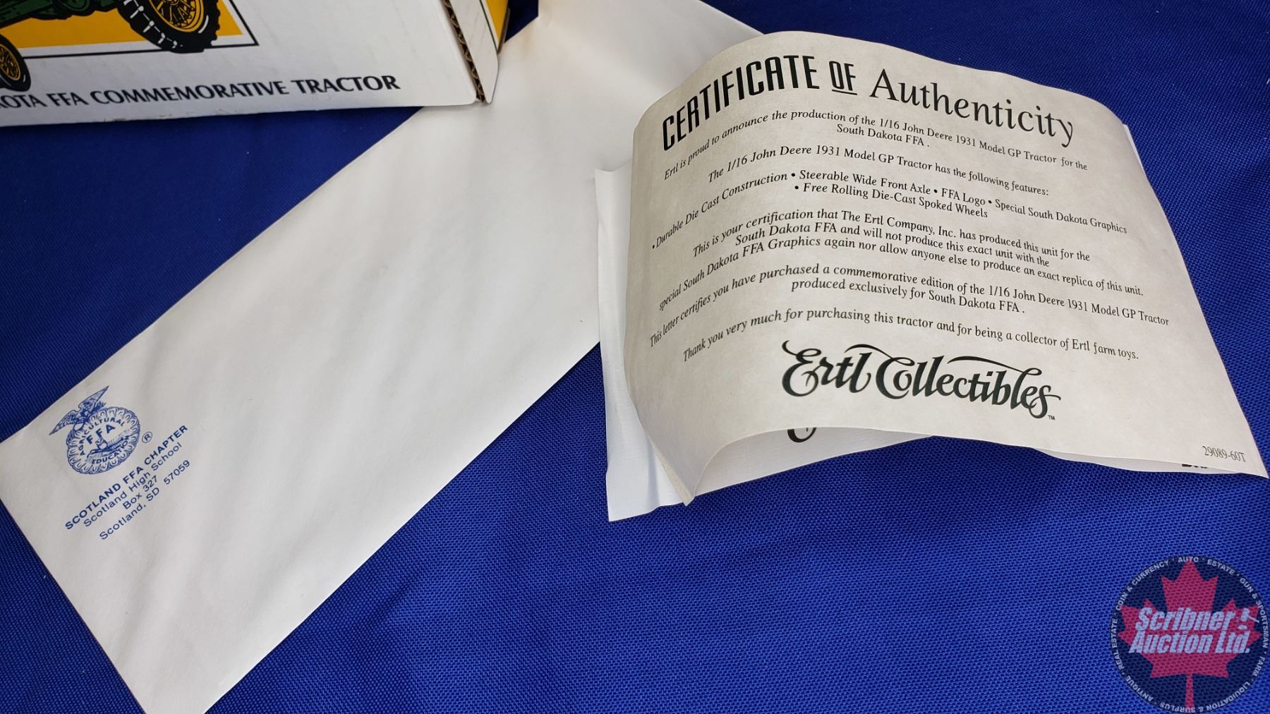 John Deere A with Umbrella "Commemorative Tractor" (1998 South Dakota FFA : 464/500) (Scale: 1/16)