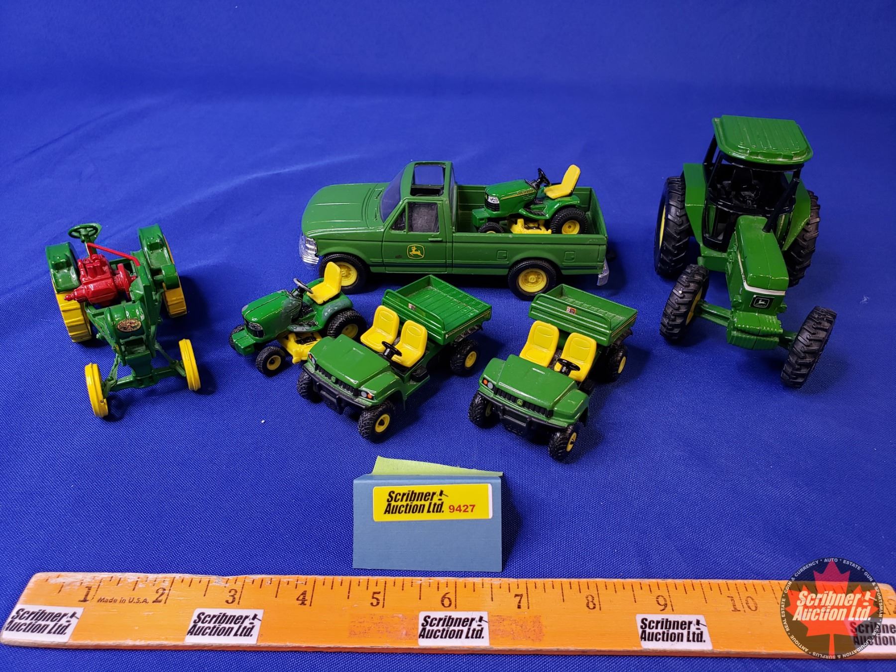 John Deere Combo (7) : Ford Pickup; Ride-on Lawnmowers, Gators, Tractors, Waterloo Boy (Scale 1:32) (SEE PICS!)