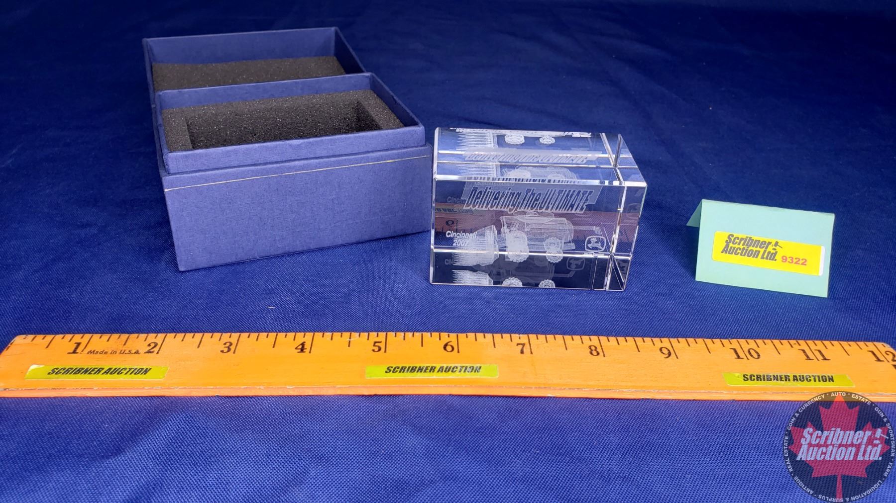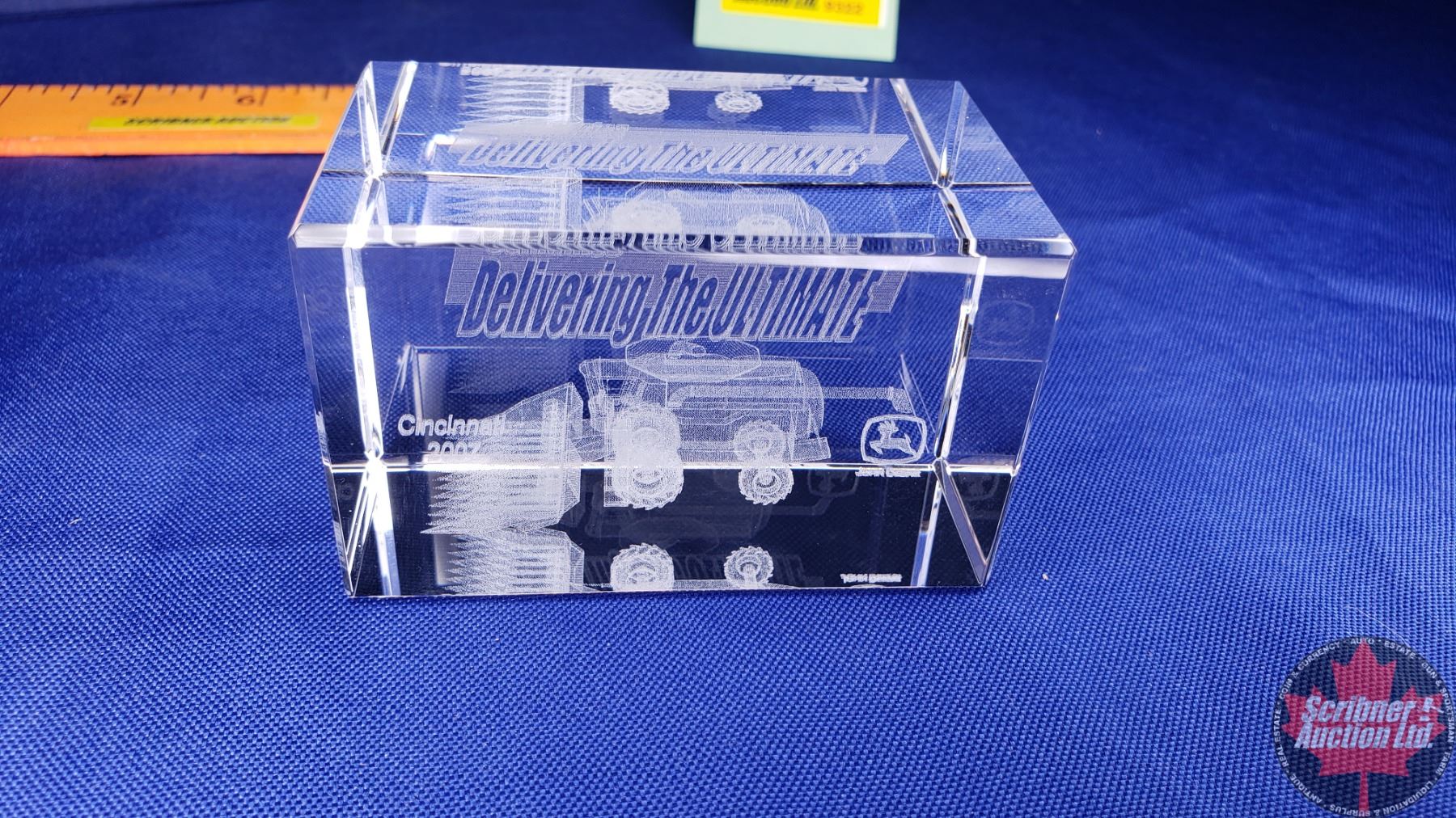 John Deere Etched Glass Paperweight of 2007 70-Series, John Deere Combine
