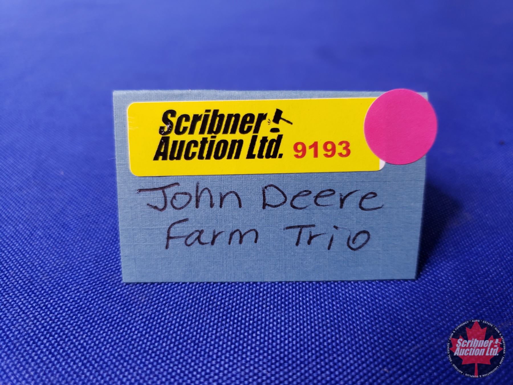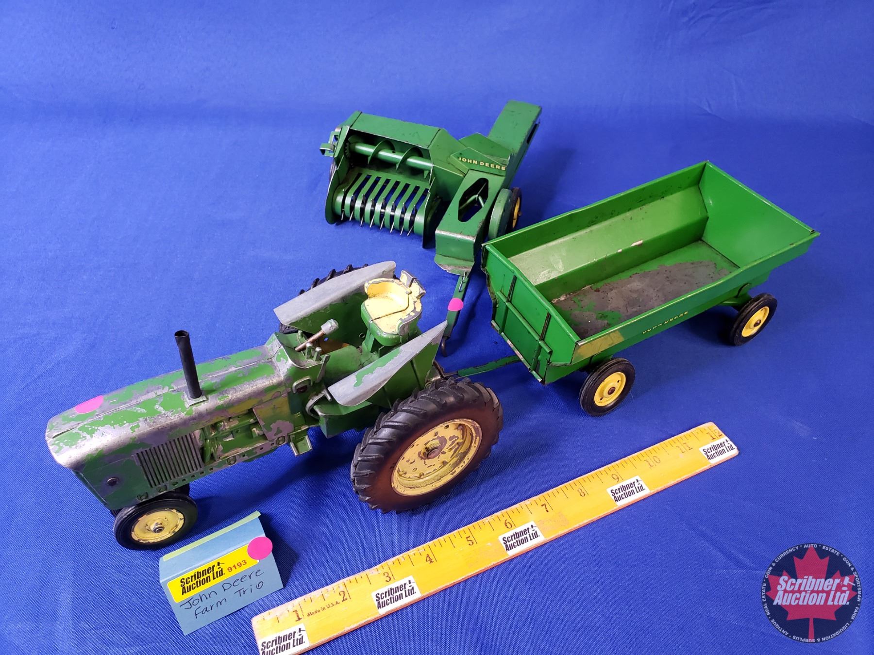 John Deere Farm Toys (3): Tractor (1); Squarebaler (1); Wagon (1) (Scale 1:16) (SEE PICS!)