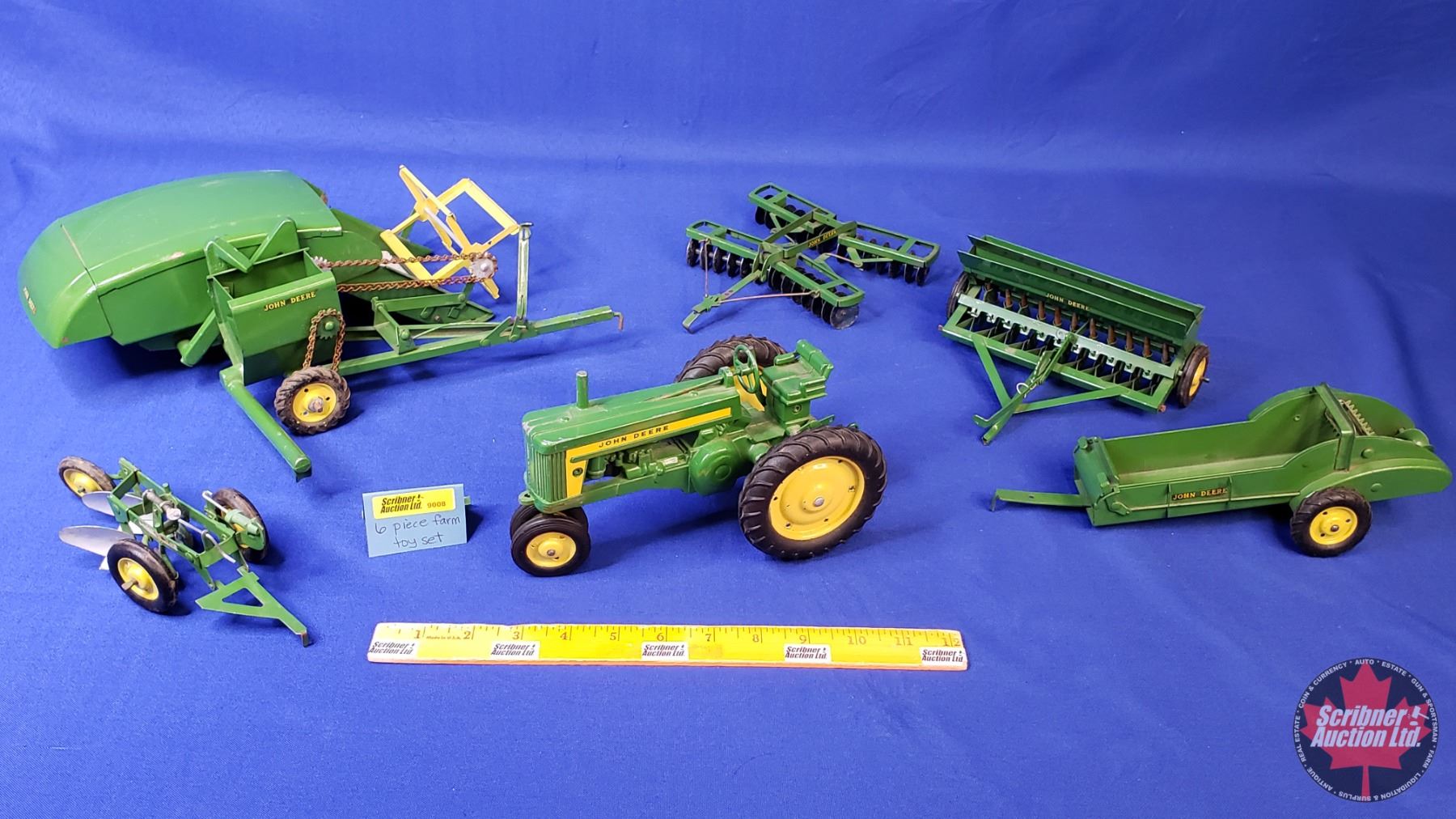 John Deere Tru-Scale Farm Toy Set (6pcs) (Scale: 1:16) (Tractor, Combine, Manure Spreader, Discs, Cultivator, Plow) (SEE PICS!)