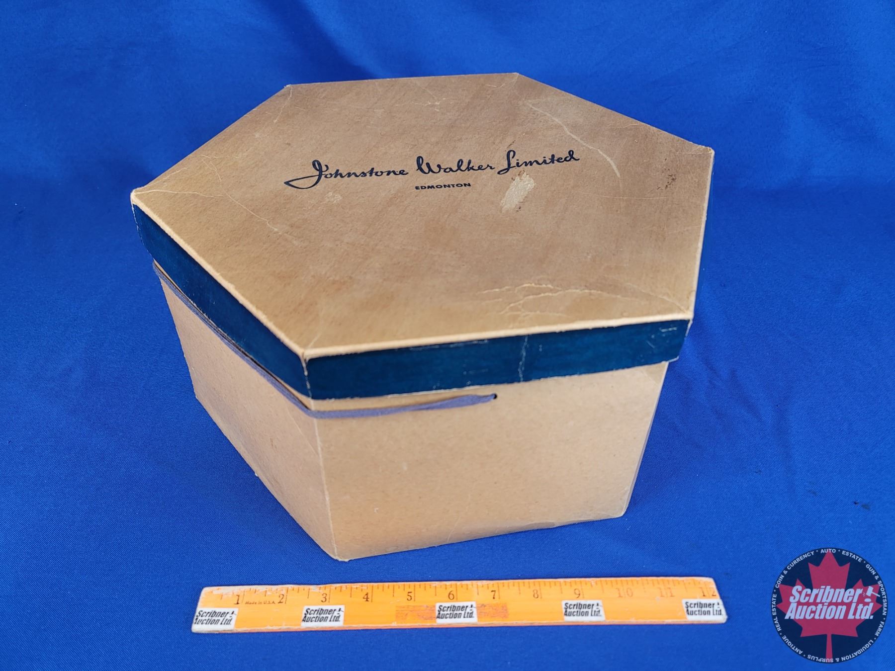 "Johnstone Walker Limited" Hat Box (7"H x 15-1/2"W x 13-1/4"D) (SEE PICS!)