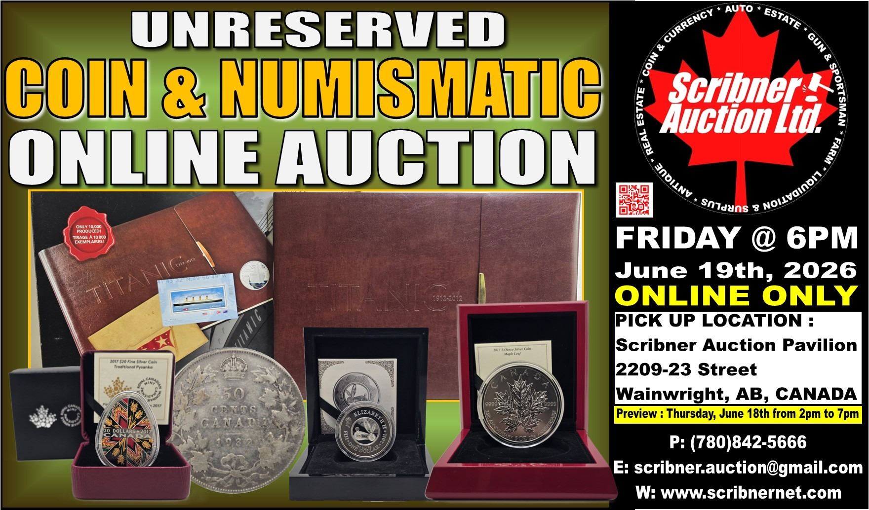 After an item has been sold, that item is the sole responsibility of the purchaser. All merchandise is sold AS IS/WHERE IS. No Guarantees or Warranties Given or Implied. Scribner Auction is not responsible for missing parts. No bidder shall retract his/her bid. All sales are final. Open house Preview on Thursday Jun 18th from 2pm - 7pm at the Auction location (2209 - 23 Street Wainwright, AB, Canada) Preview is subject to change at any moment and is up to the discretion of Scribner Auction Ltd.