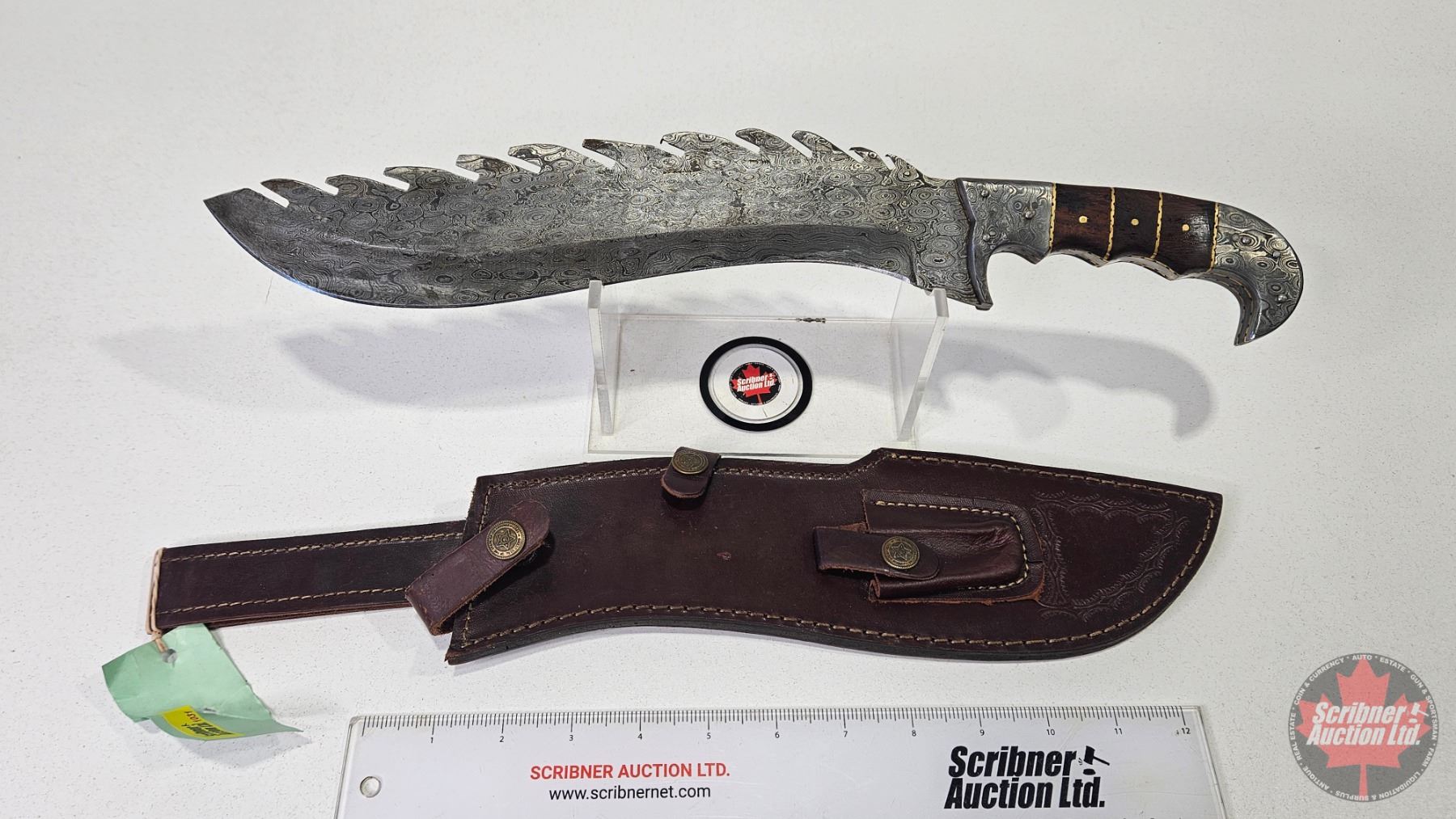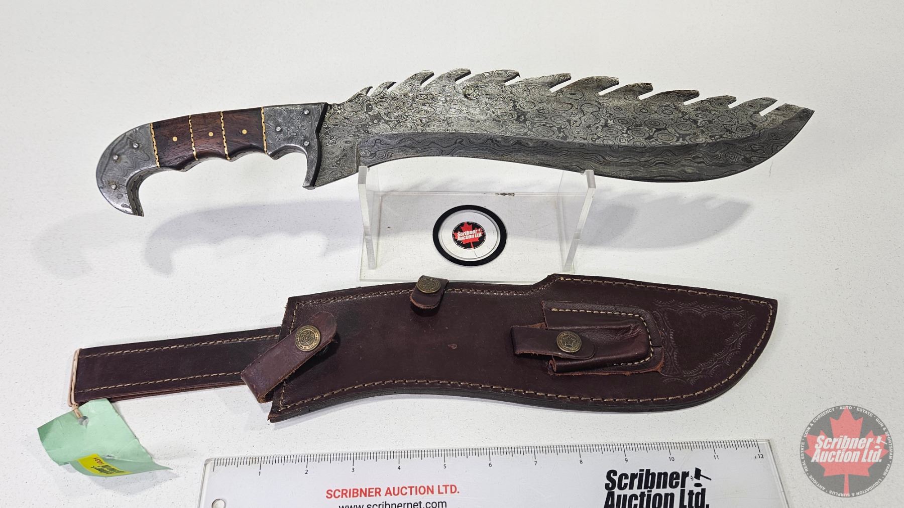 KNIFE : Damascus Kurki w/Leather Sheath (Total Measures: 17"L)