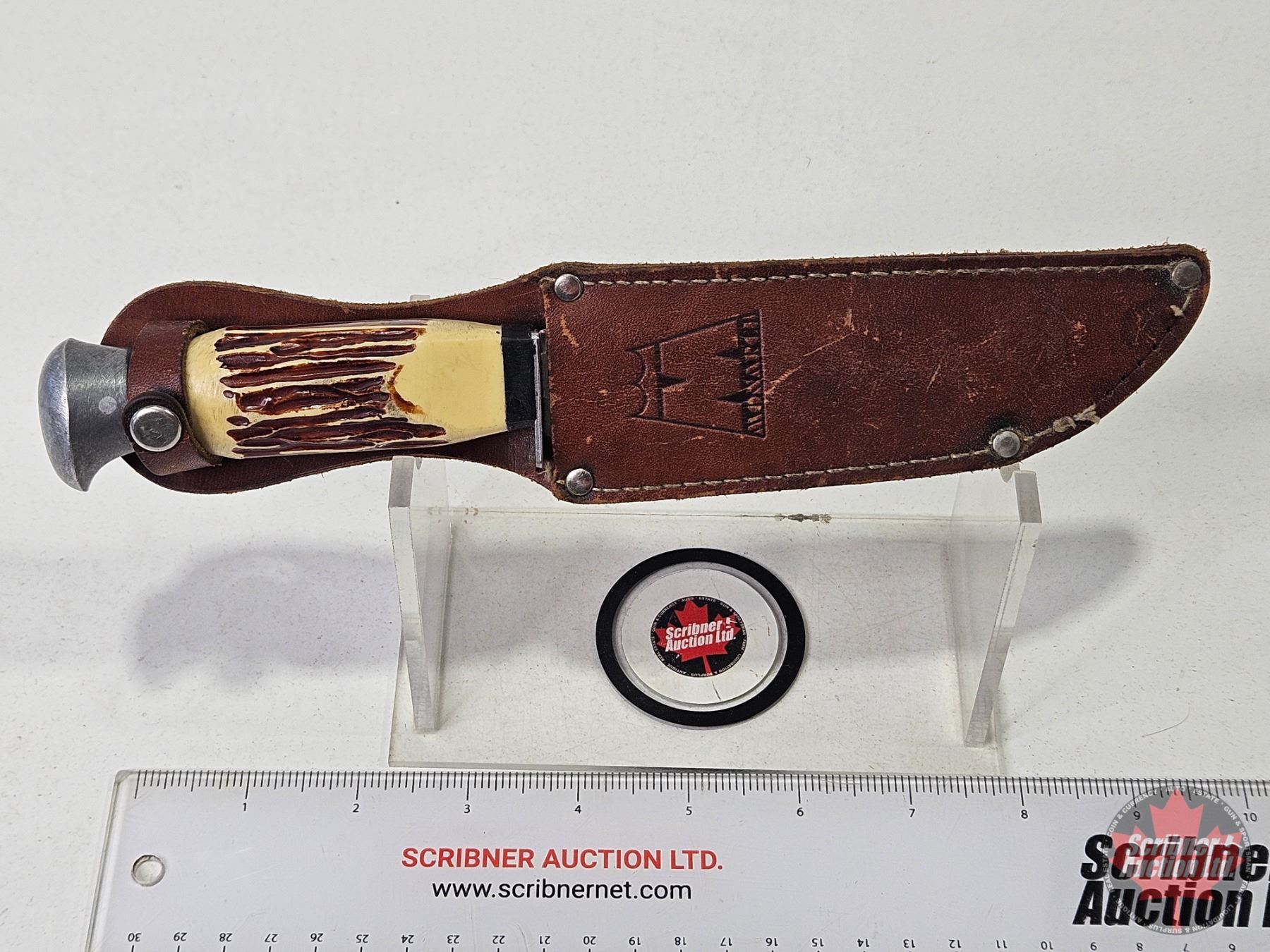 KNIFE : Tramontina w/Leather Sheath (Consignor Tag ~Tramontina Inox Stainless Brasil) (Total Length