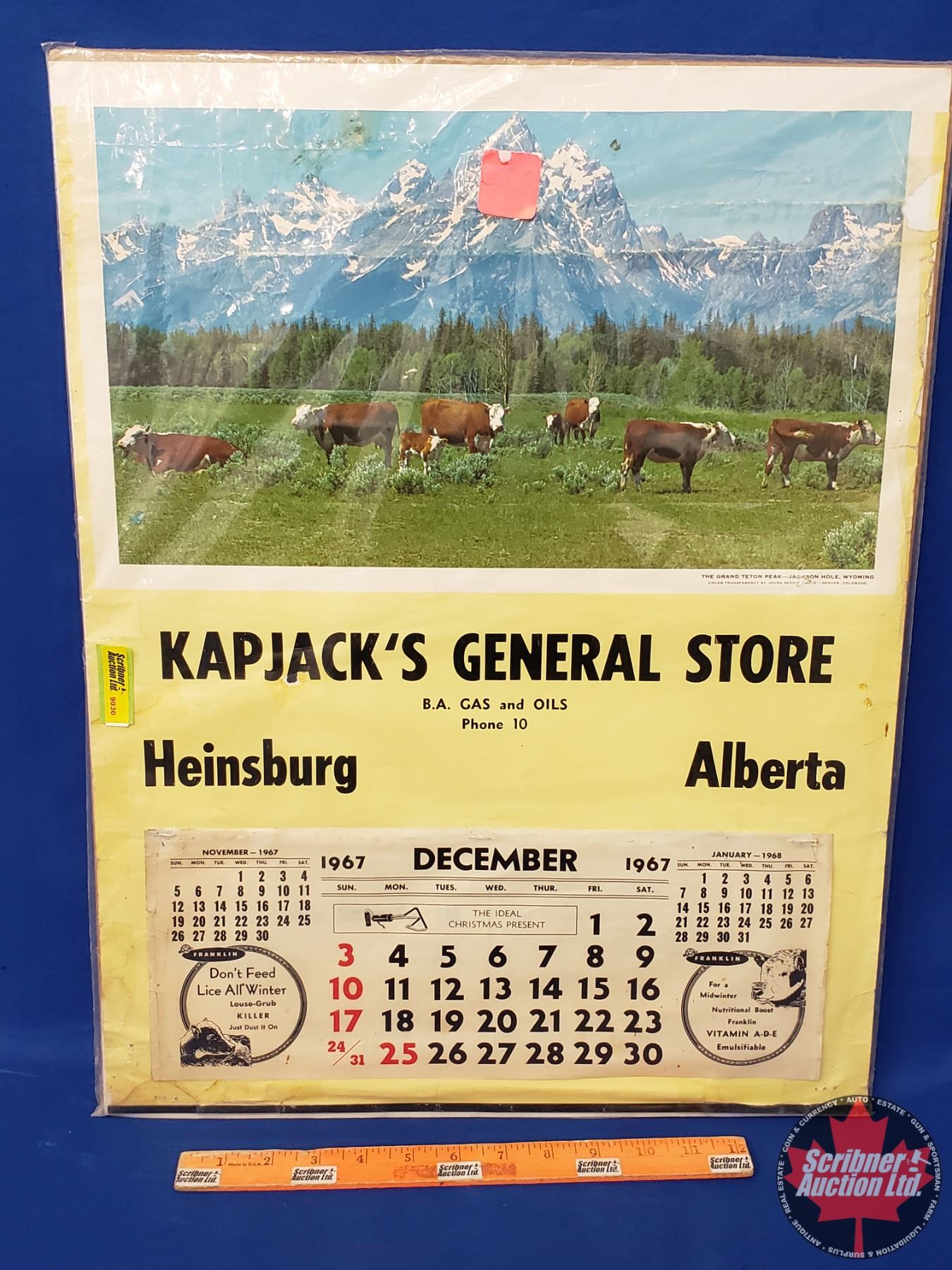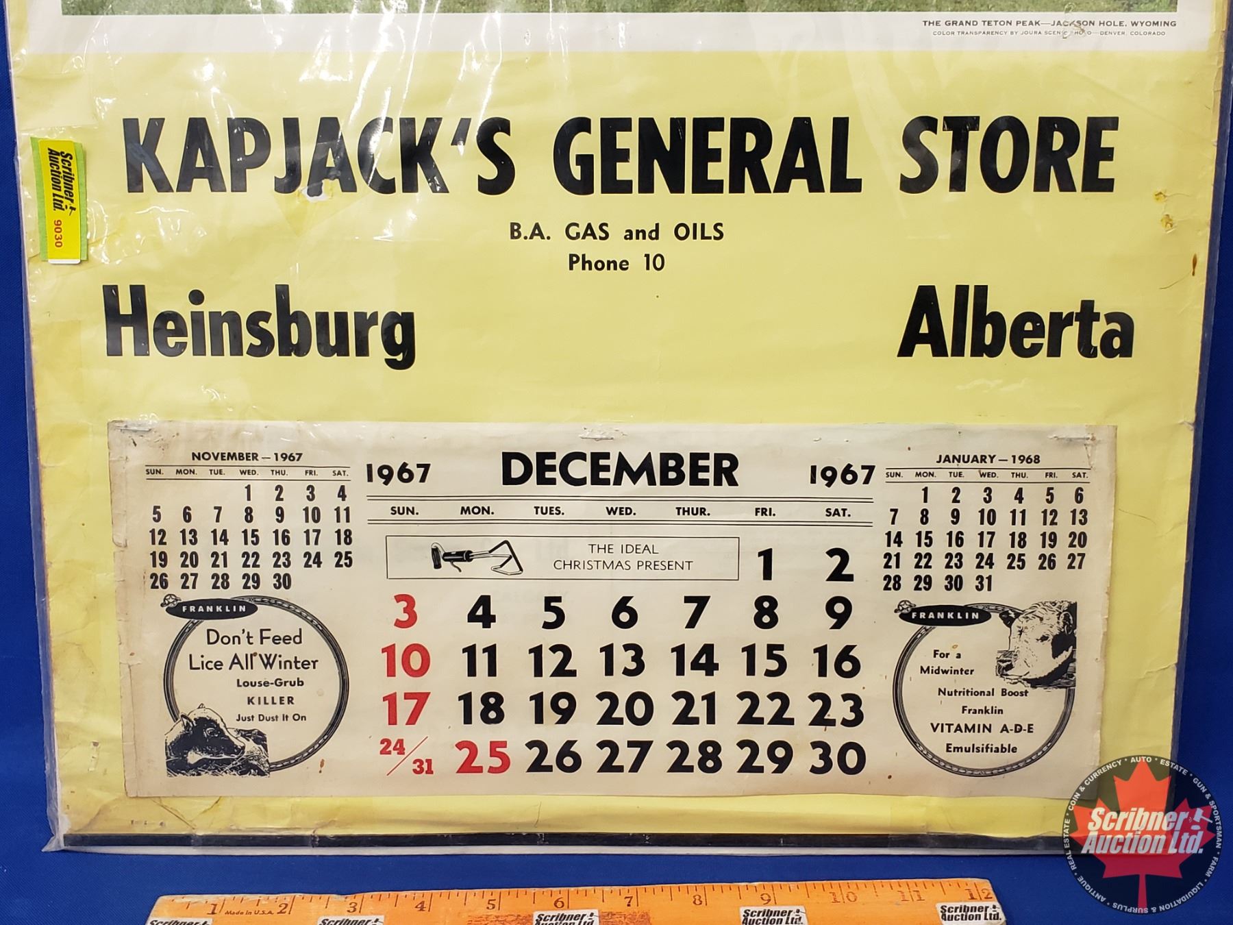 "Kapjack's General Store" Advertising Calendar Dec 1967 (22-1/4" 17-1/4"W) (SEE PICS!)