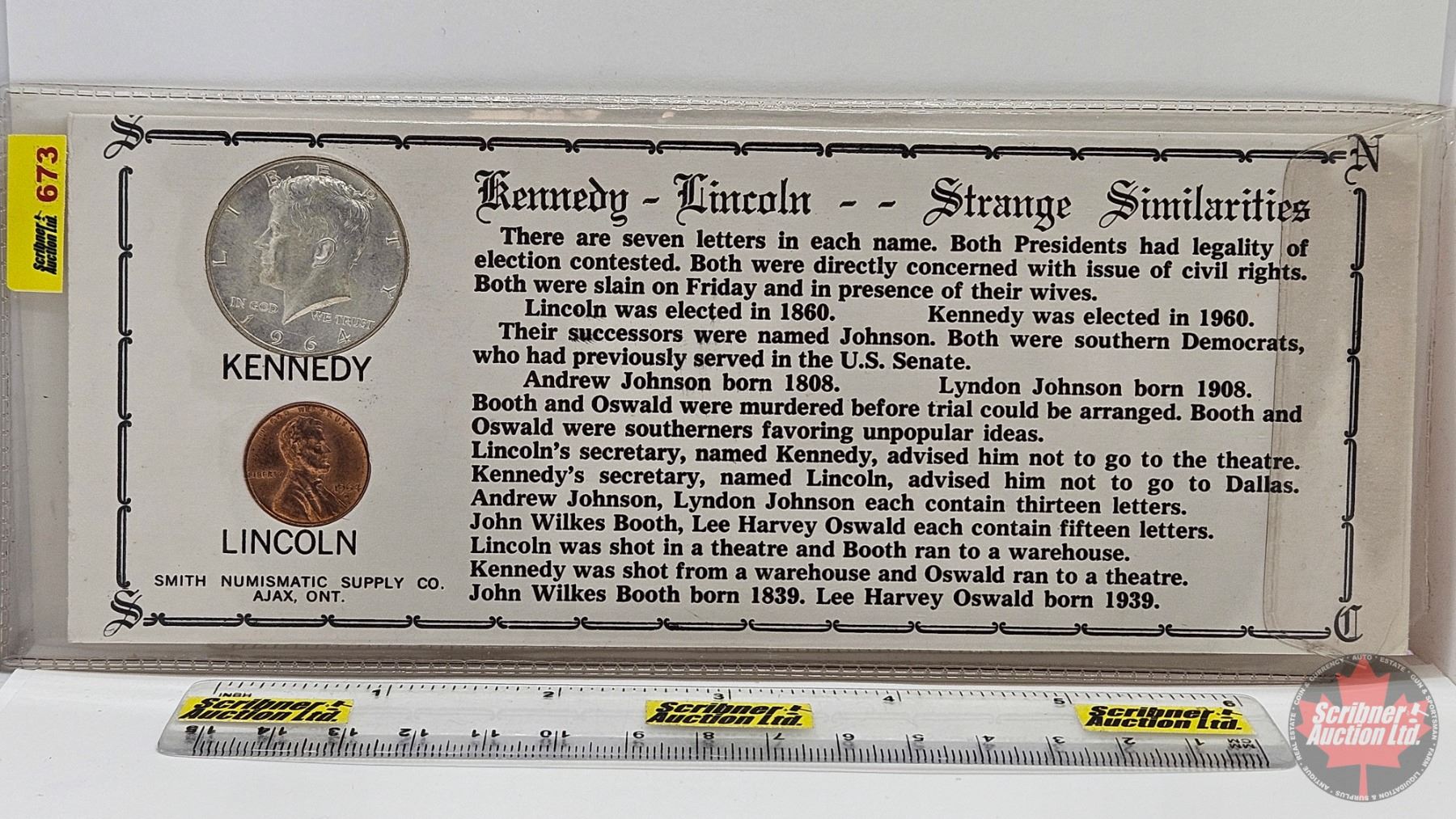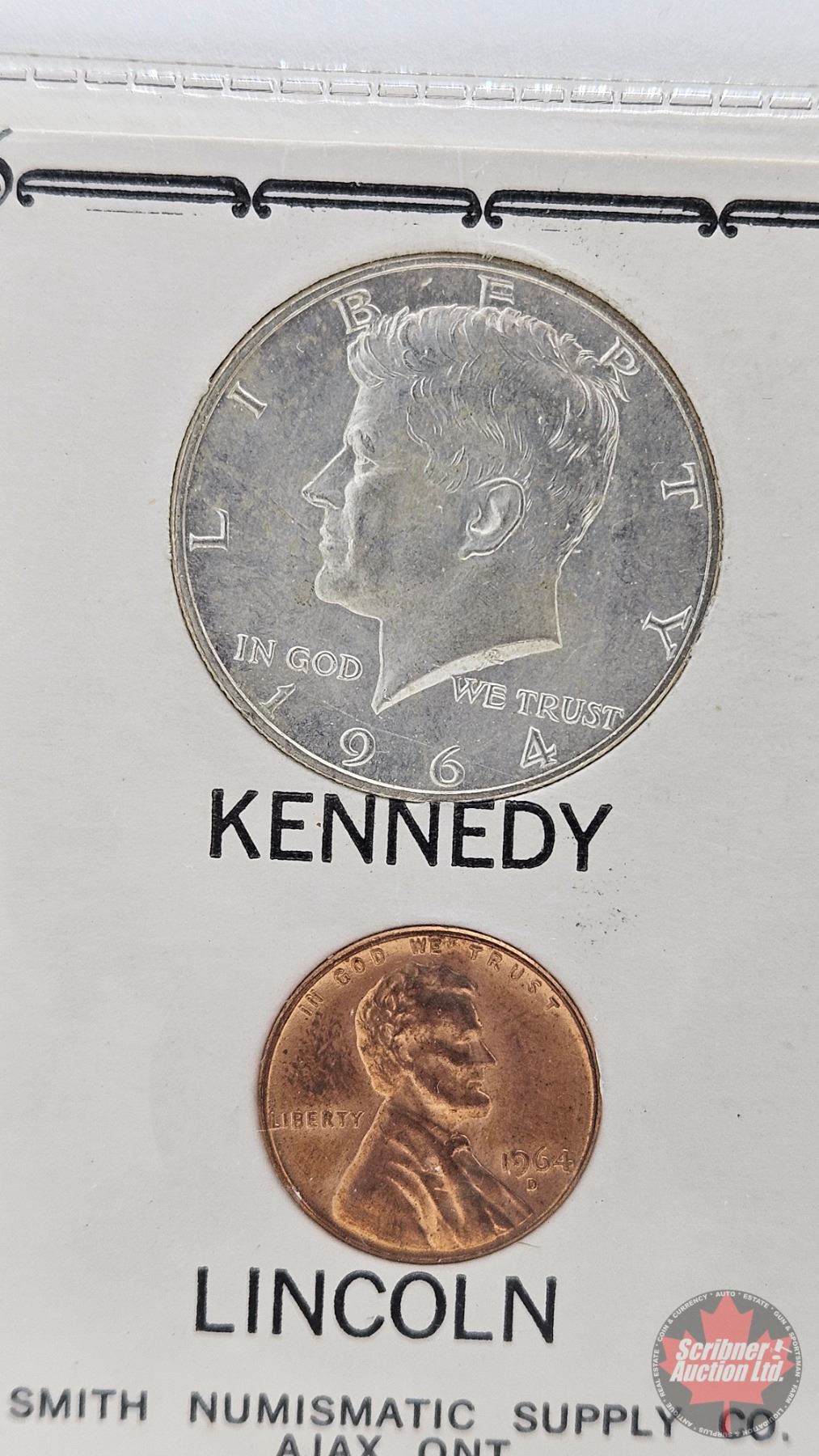 Kennedy - Lincoln 1964 : Strange Similarities (2 Coins - Information Card)