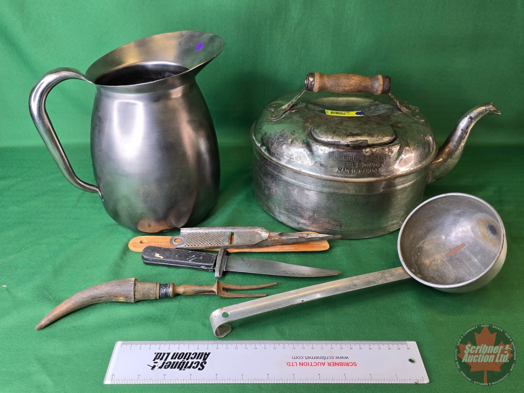 Kettle & Pitcher w/ Kitchen Utensils (Pitcher Measures 9-1/2"H)