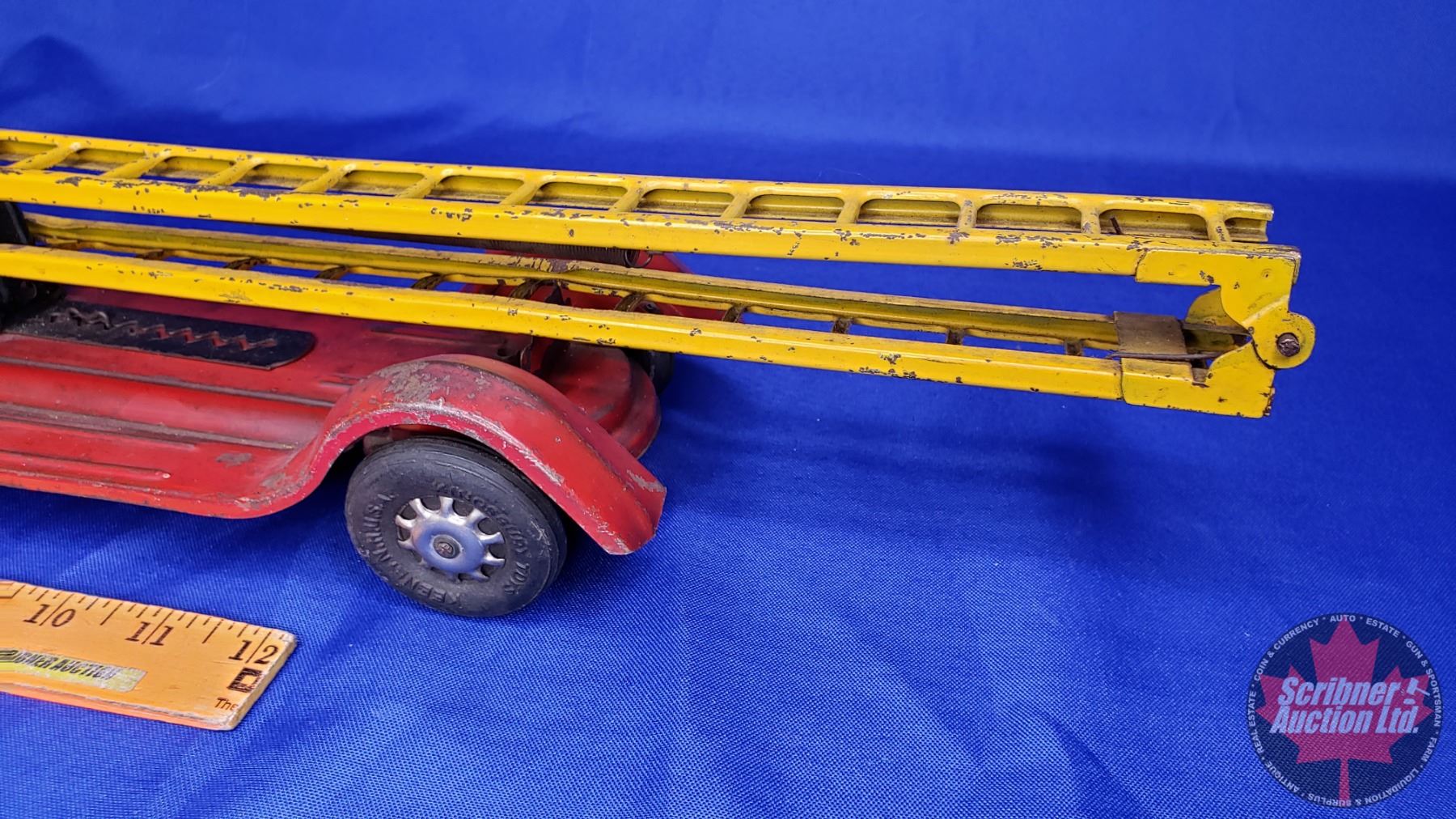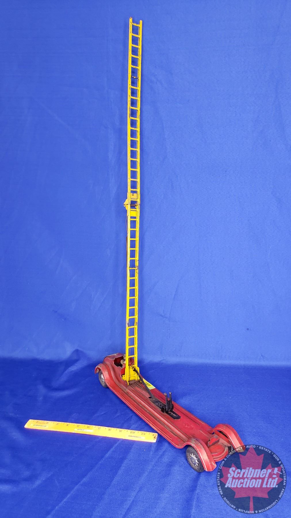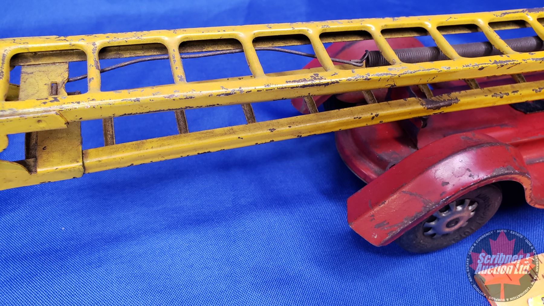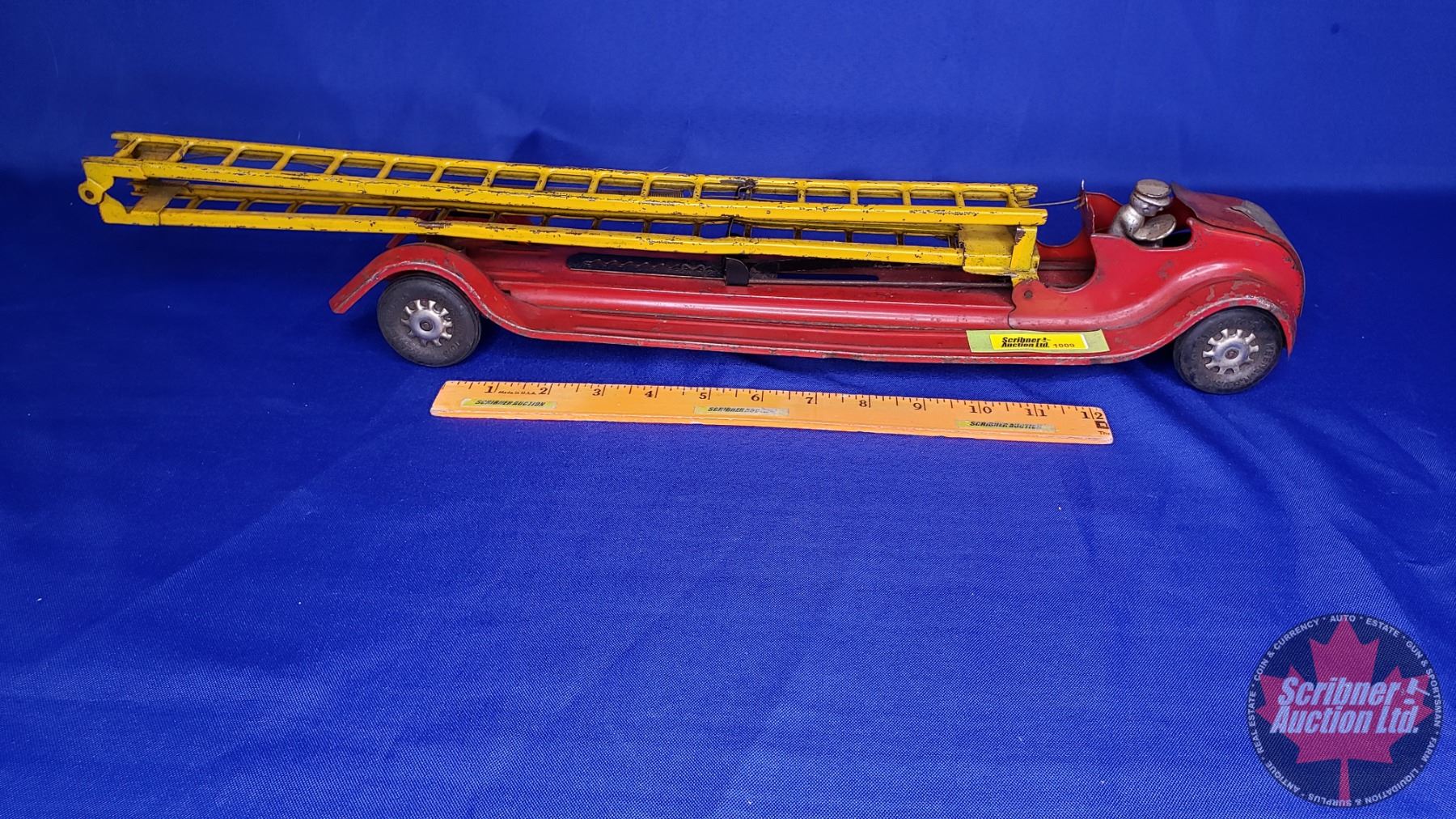 Kingsbury Toys (Pressed Steel Wind-Up Toy) Ladder Truck (4"H x 4"W x 24"D) (SEE PICS!)