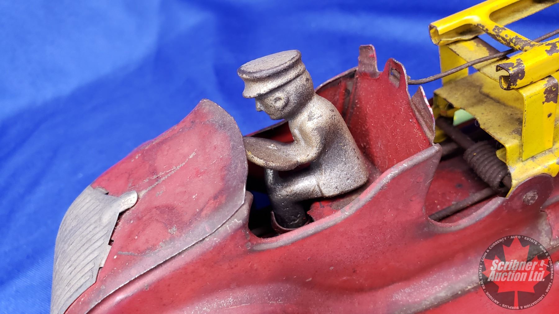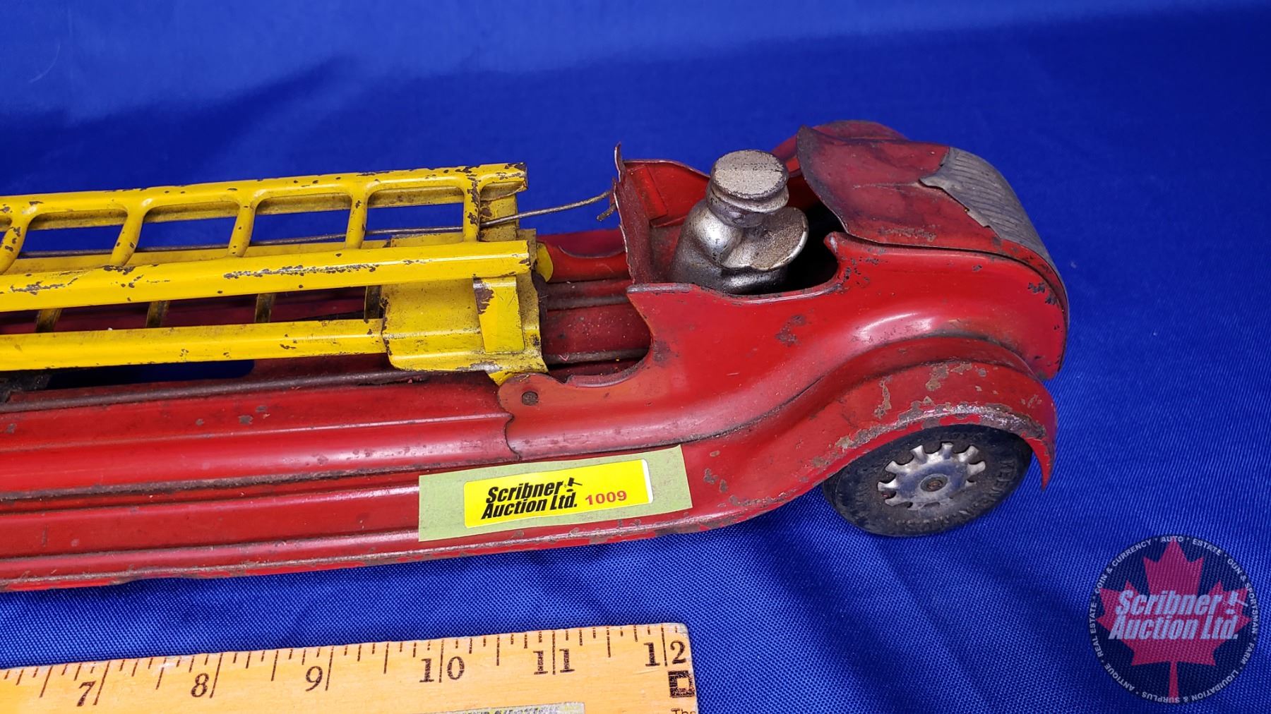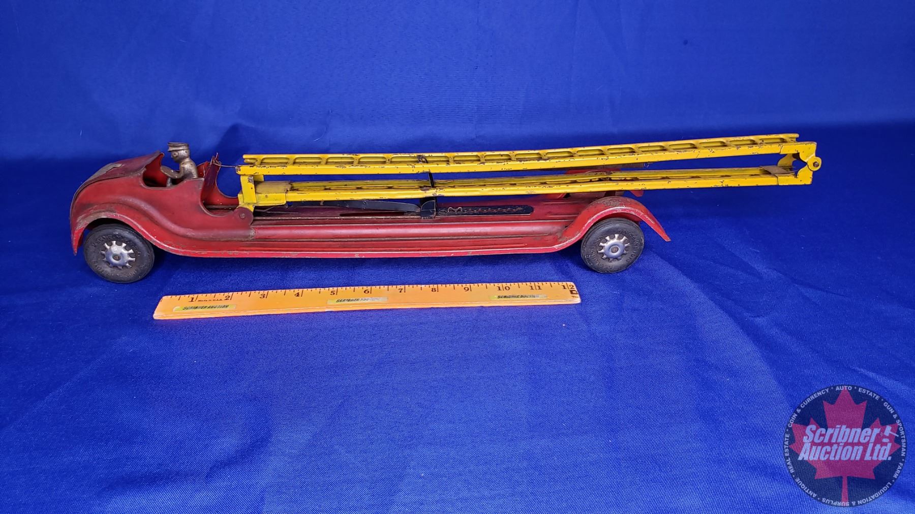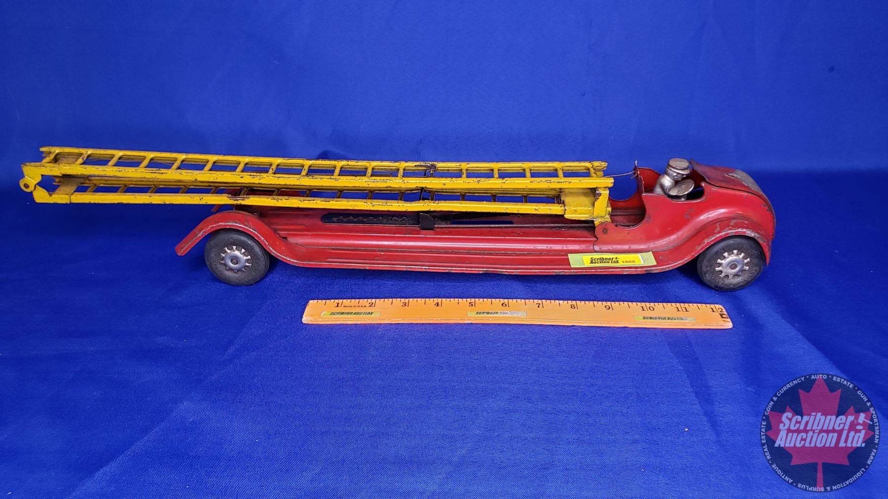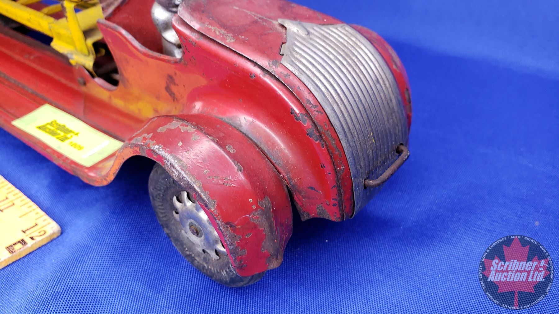 Kingsbury Toys (Pressed Steel Wind-Up Toy) Ladder Truck (4"H x 4"W x 24"D) (SEE PICS!)