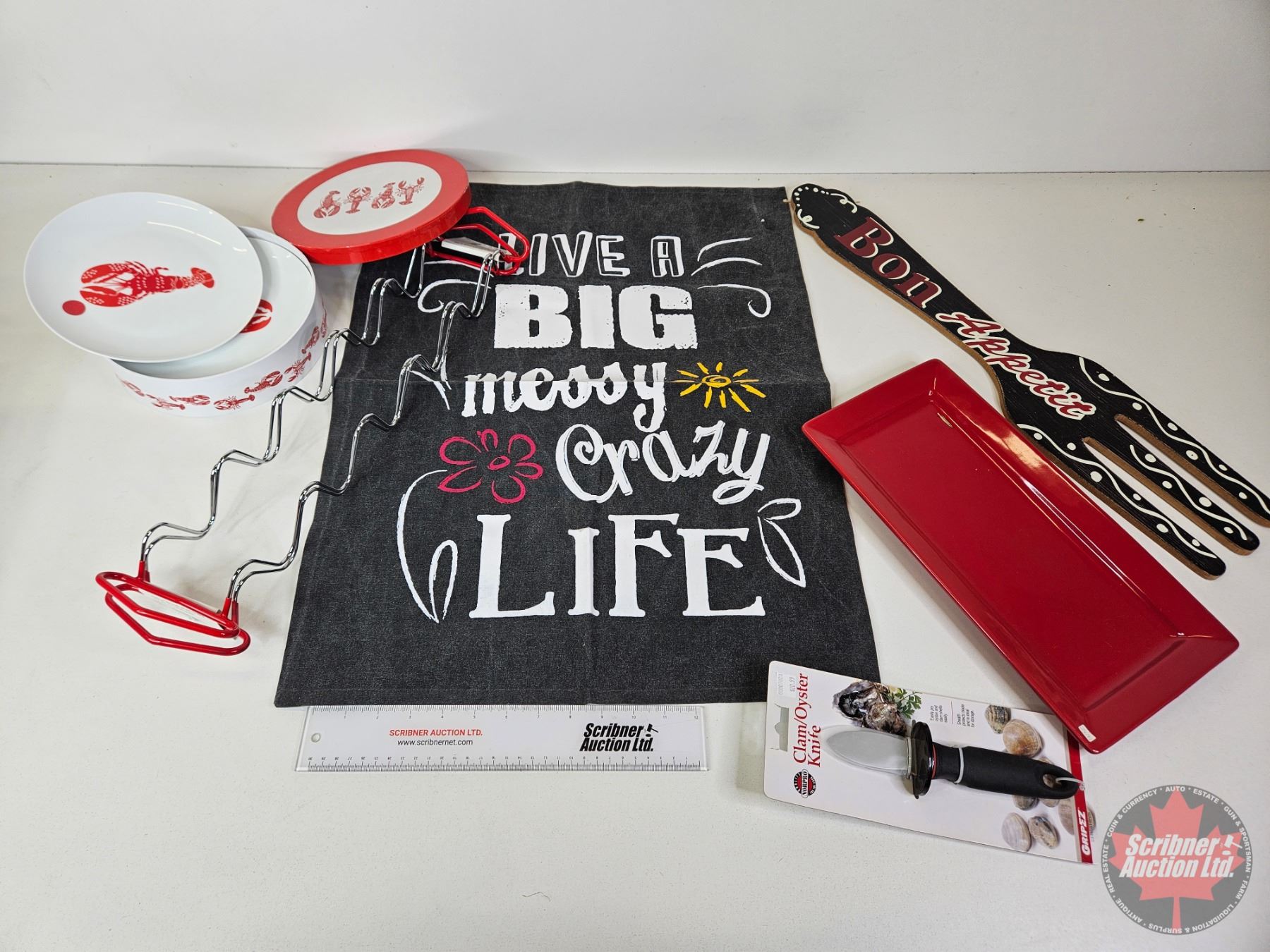 Kitchen Décor Combo : Lobster Plates, Taco Holders, Clam/Oyster Knife, Bon Appetite Sign, etc