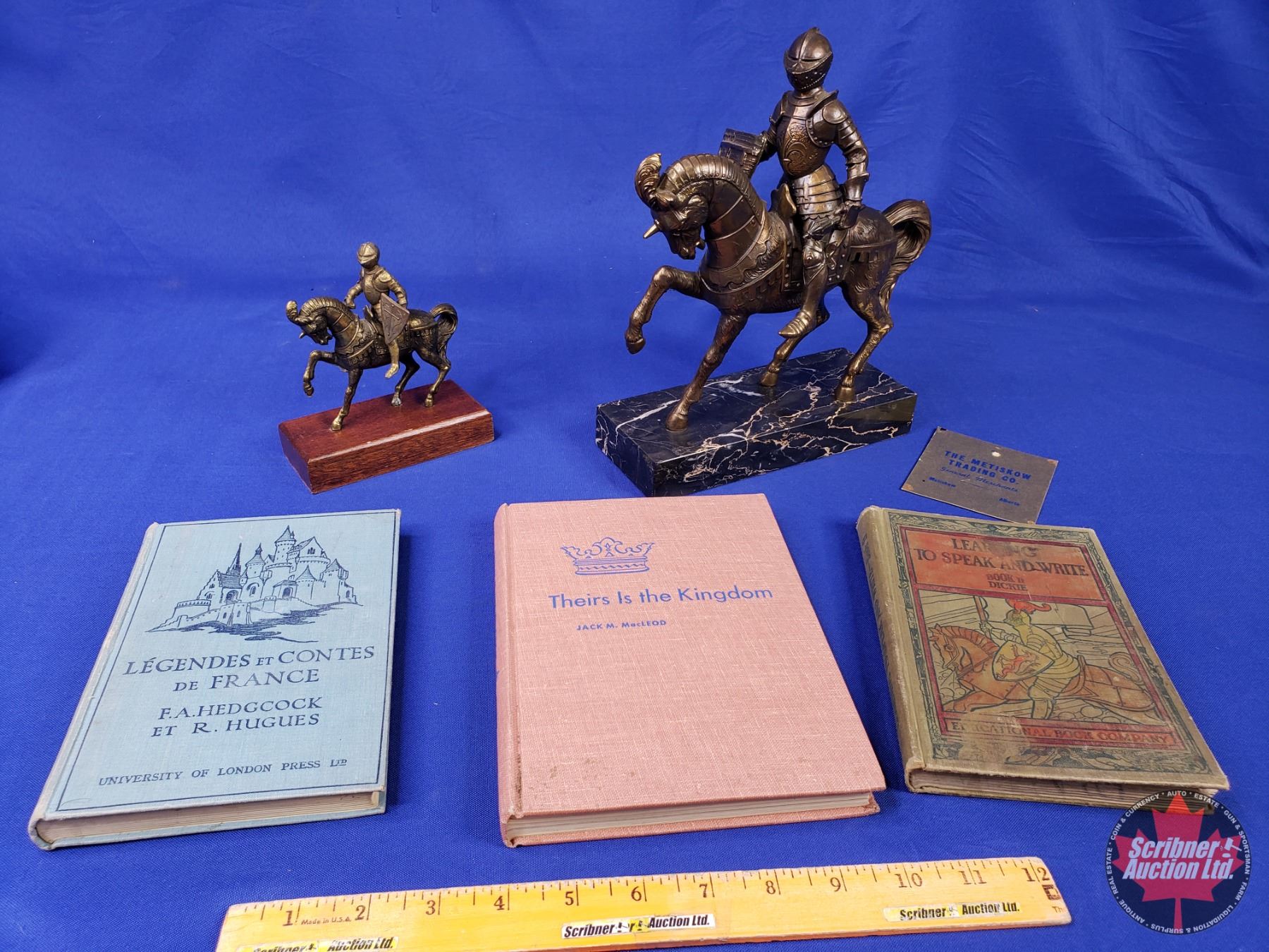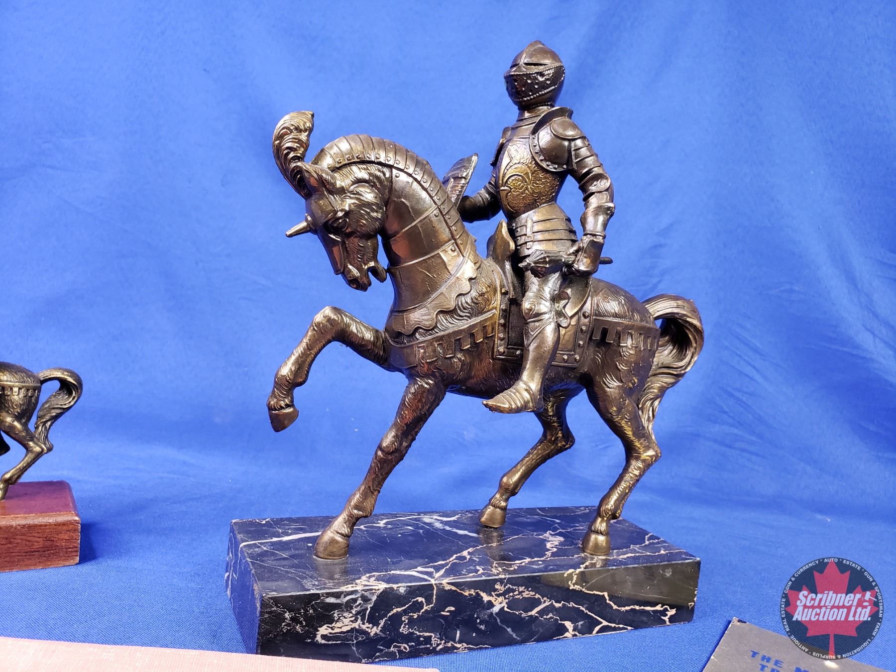 Knight Statues (2) & Hardcover Books (3) (Largest Statue Measures: 10"H) (SEE PICS!)