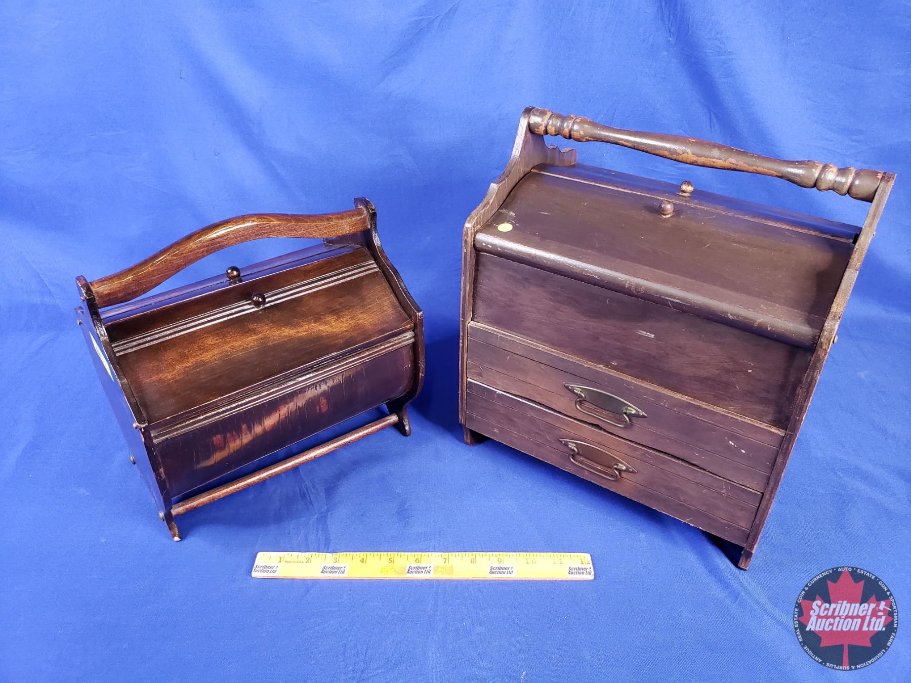 Knitting/Sewing Wood Boxes (2) (Largest Measures: 14"H x 12"W x 9"D) (SEE PICS!)