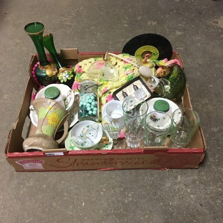 Porcelain Doll, 45, Glassware, Salt & Flour Shaker, Perfume Atomizer, Vases, etc
