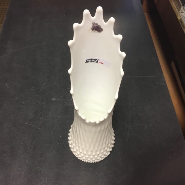 Fenton Hobnail Milk Glass Stretch Swung Vase