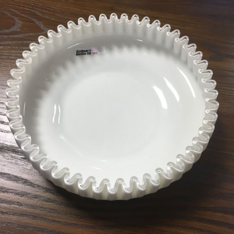 Fenton 10" Round Crimped Rim Milk Glass Low Footed Bowl