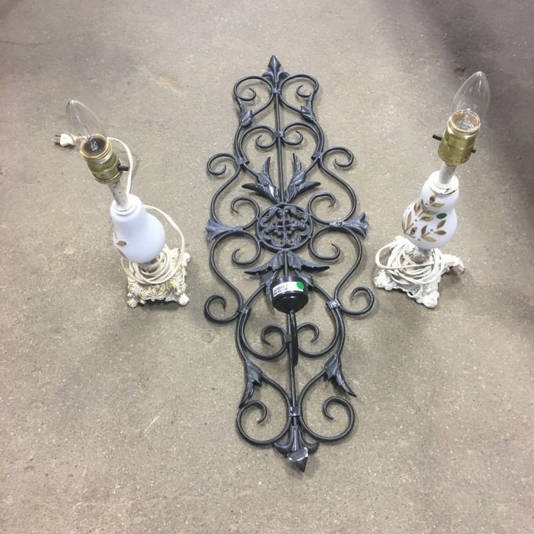 Pair of Electric Lamps & Wall Lattice Candle Holder