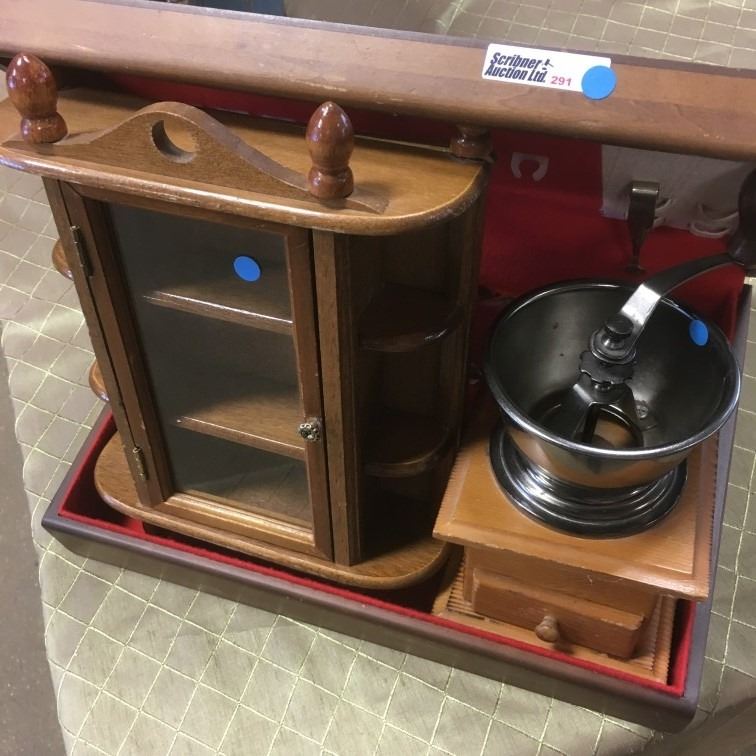 Silverware, Small Curio Cabinet & Coffee Grinder