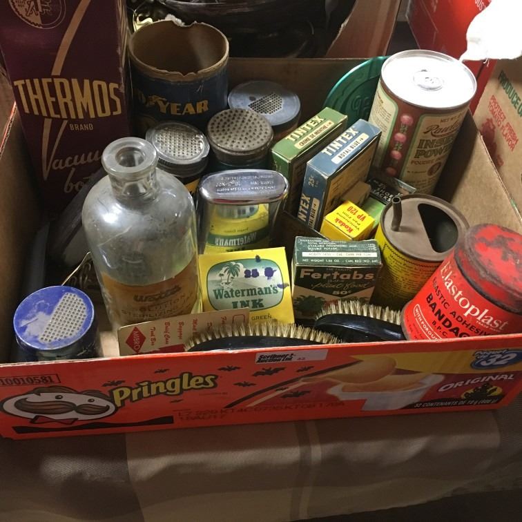 Tins, Ink Box, Thermos, Shoe Shine Brushes, Hand Warmer, etc