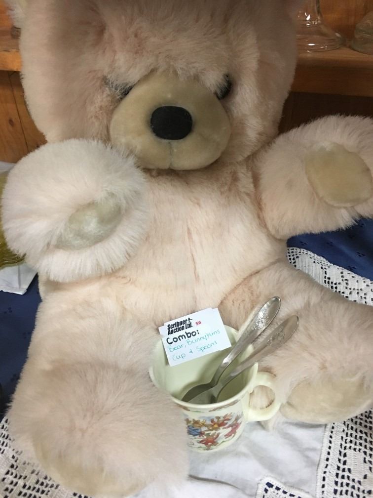 Stuffed Bear, Bunnykins Cup & Dumbo Spoon & Fork