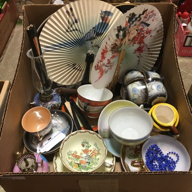 Fans, Cups/Saucers, Mini Oil Lamps, etc