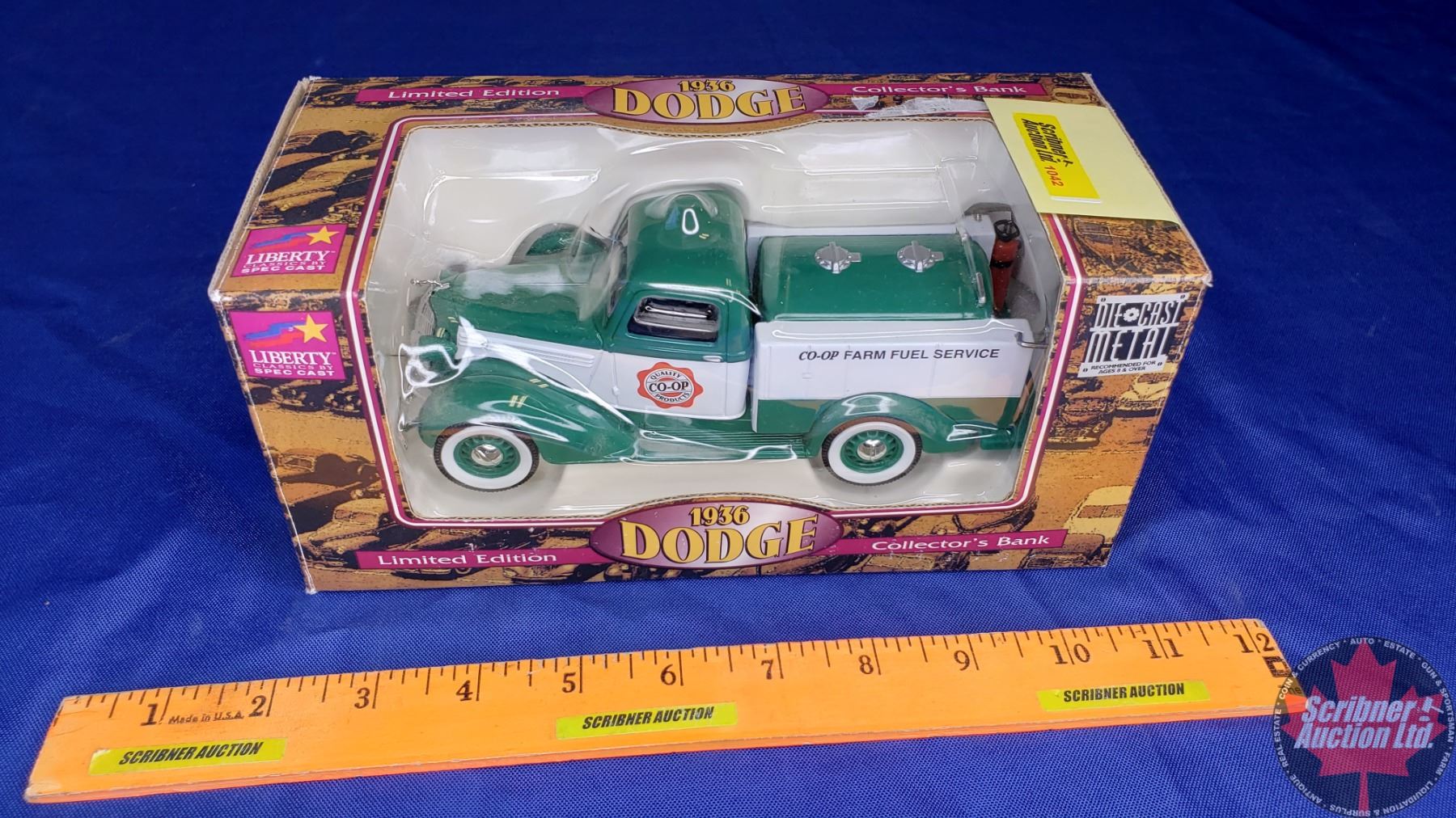 Liberty Classics : Coin Bank "1936 Dodge" "Quality Co-Op Products" "Co-Op Farm Fuel Service" Limited Edition