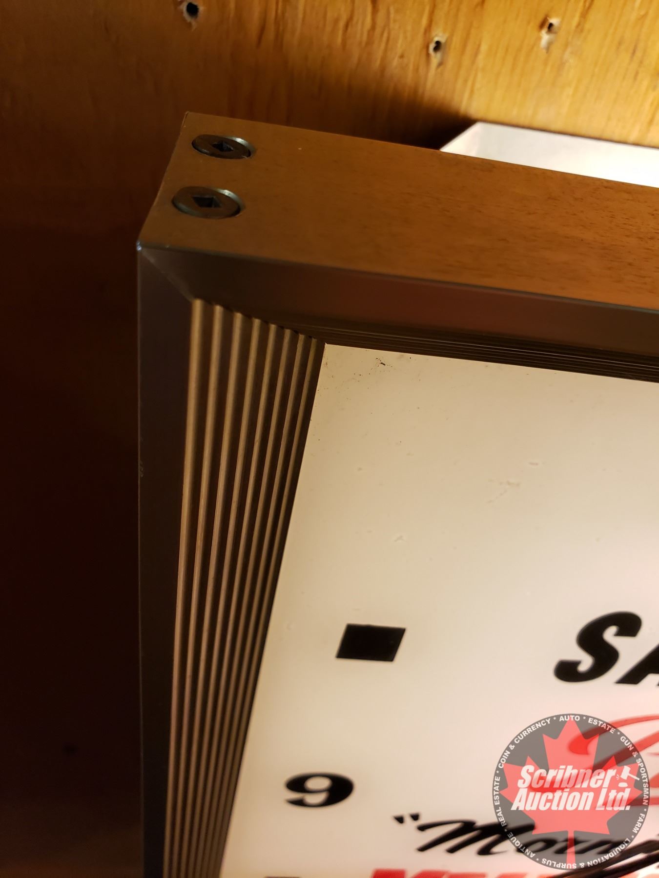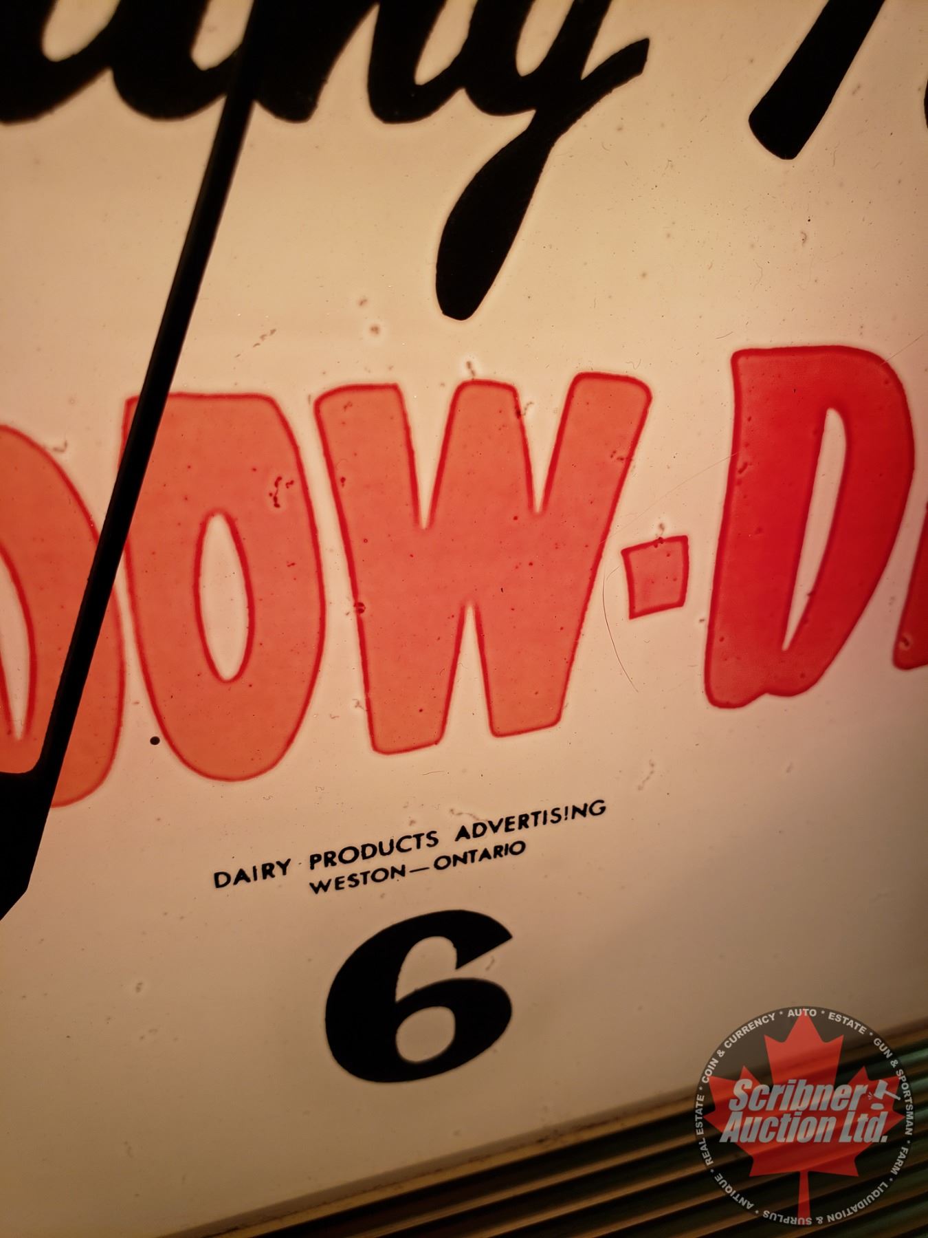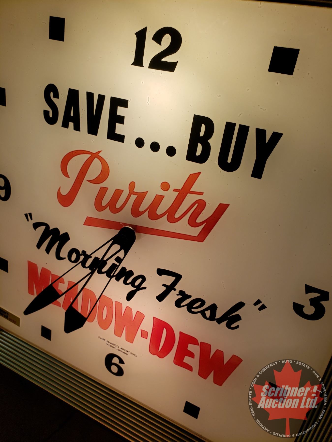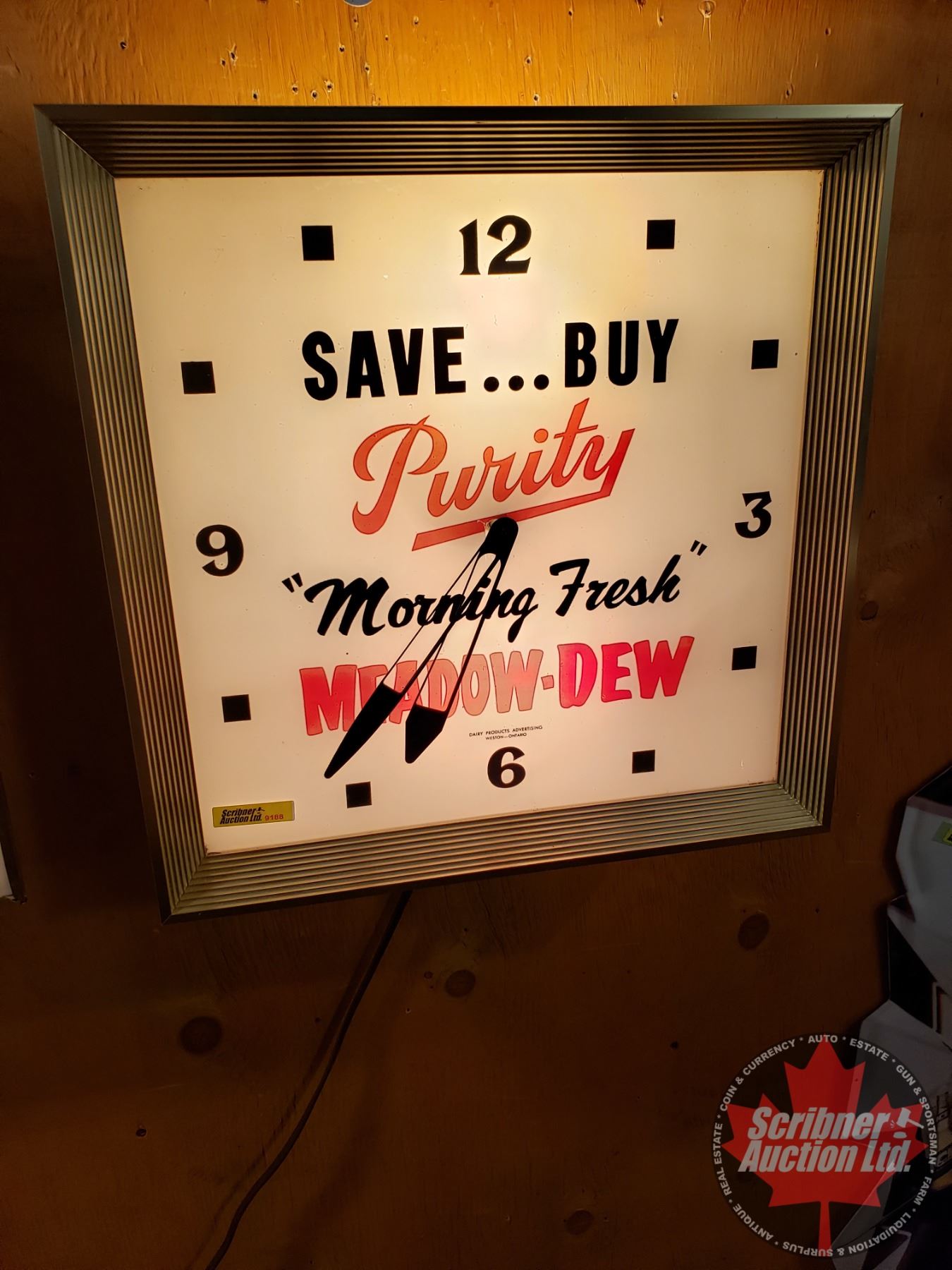 Light Up Advertising Clock "Purity Meadow-Dew" "Save-Buy" "Morning Fresh" (15-1/2"H x 15-1/2"W x 4-1/4"D) (See Pics!)