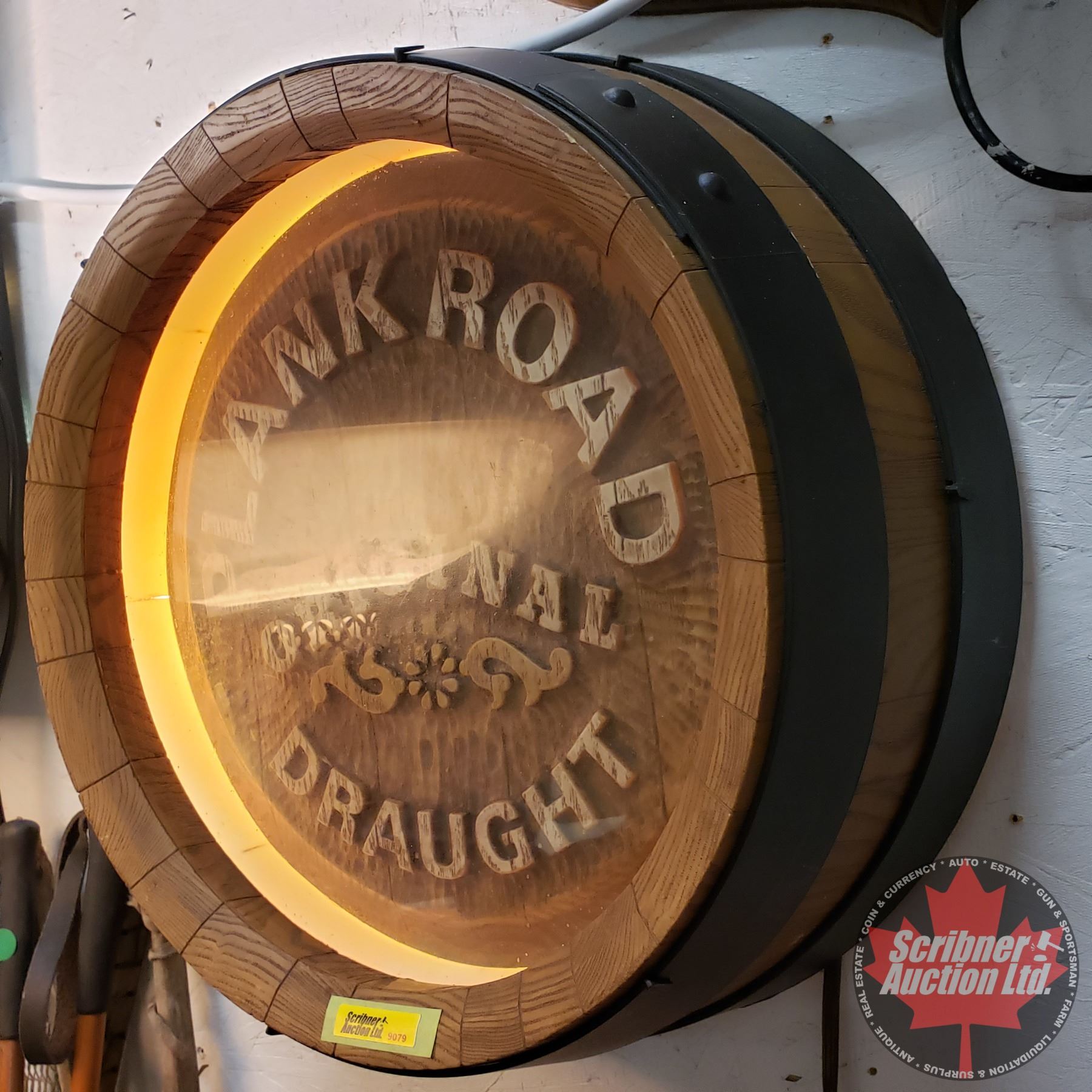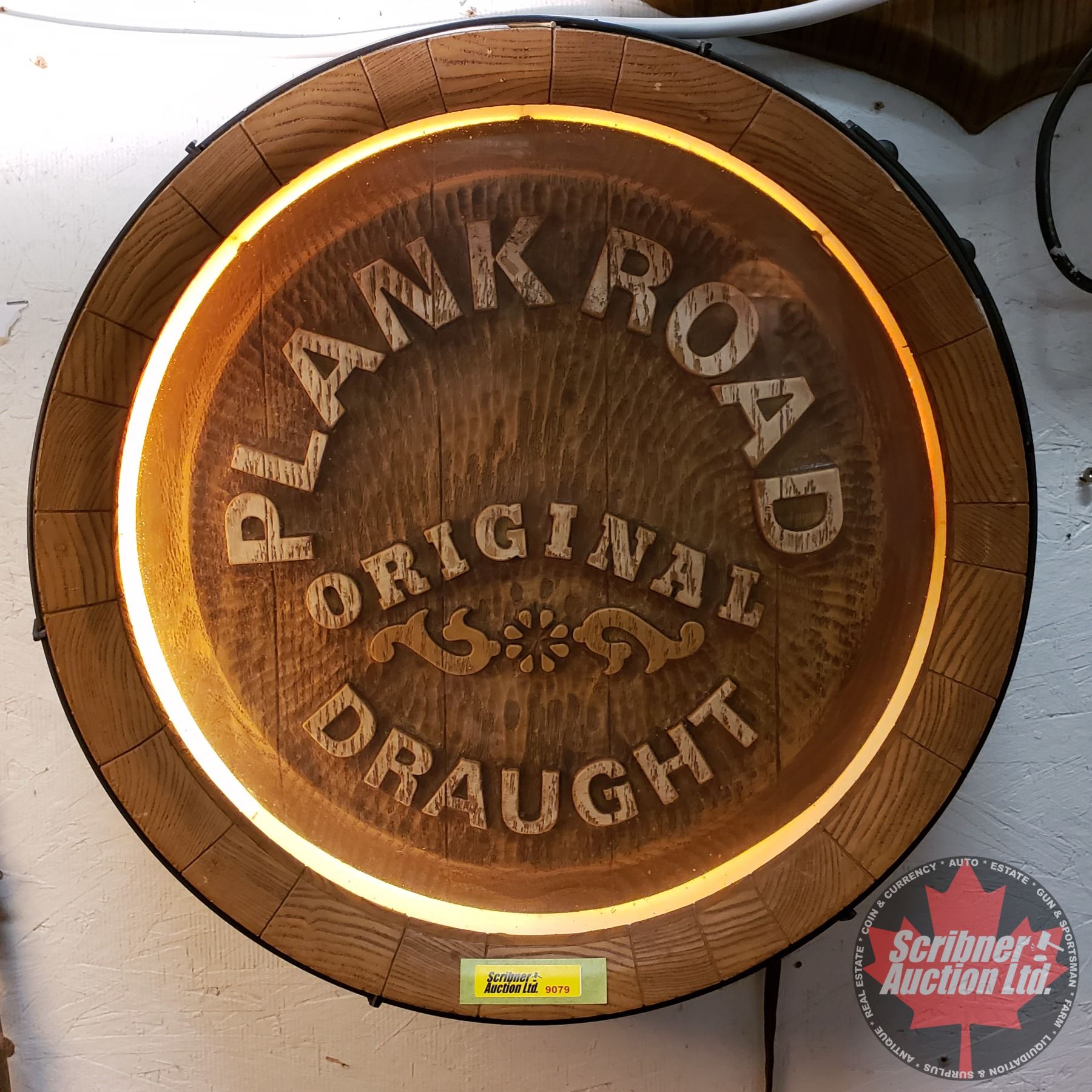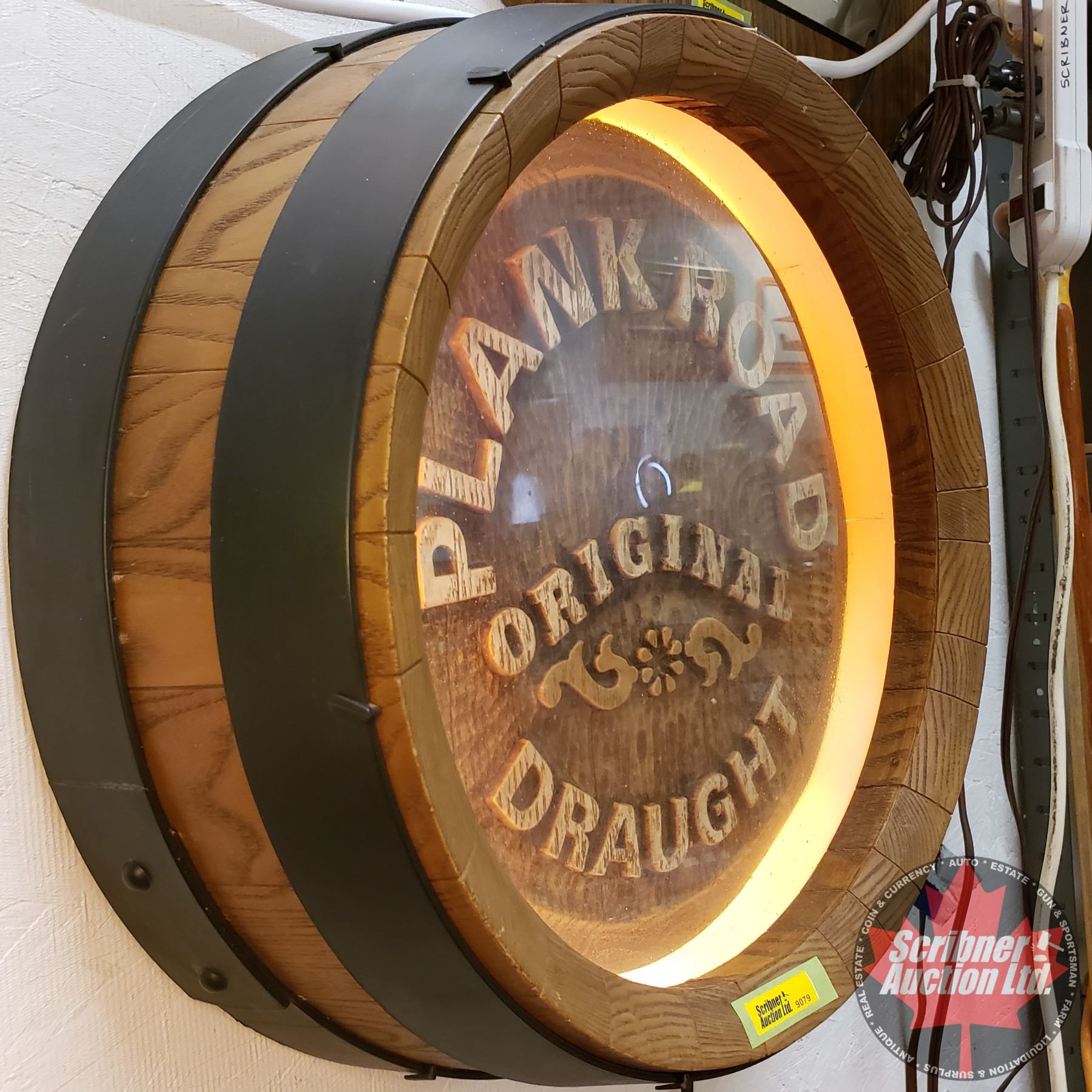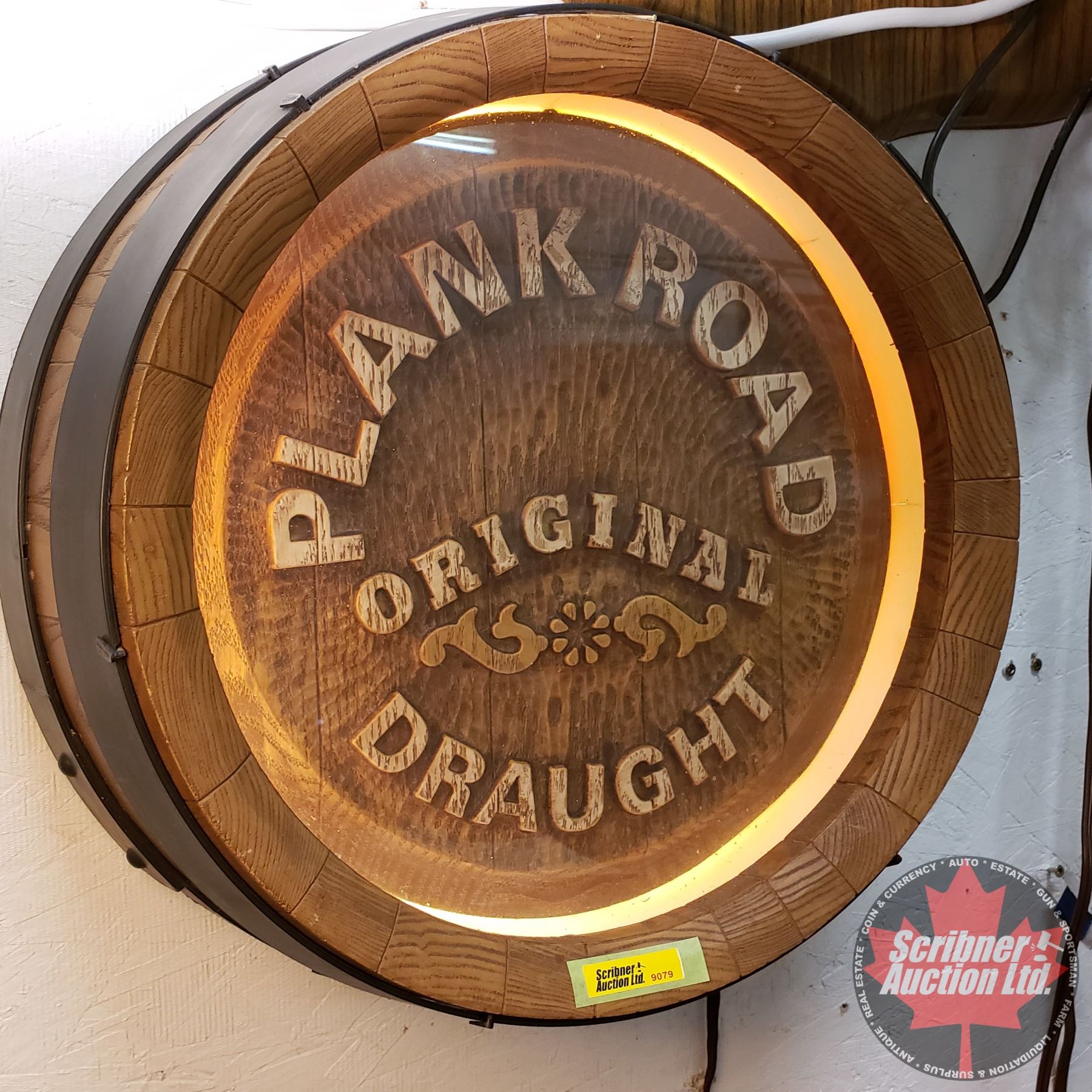 Light Up Wall Mount Barrel End Beer Sign "Plank Road Original Draught" (7"D x 18"Dia) (See Pics!)