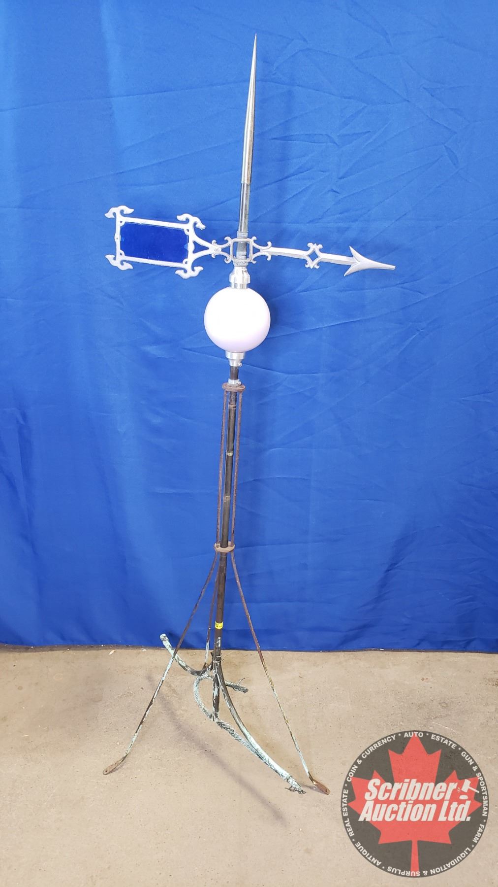 Lightning Rod w/Stained Glass Weathervane Arrow & Purple Ball (58"H)
