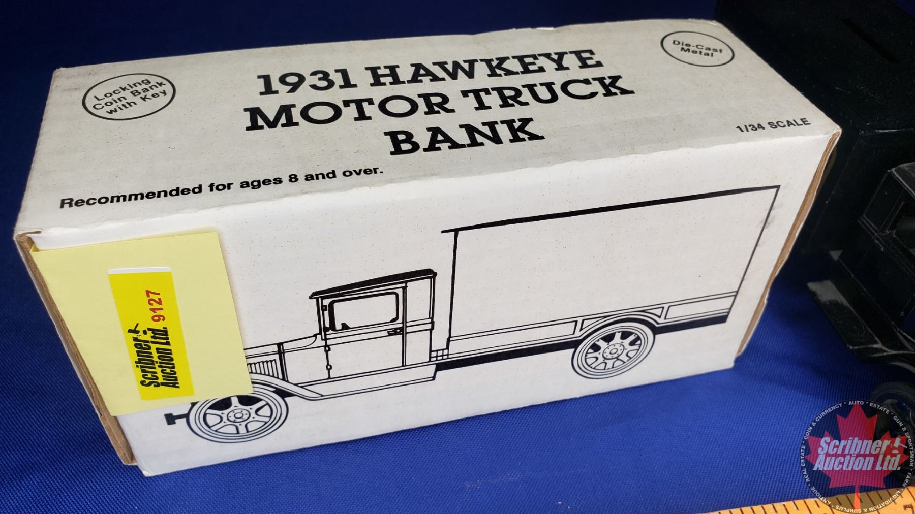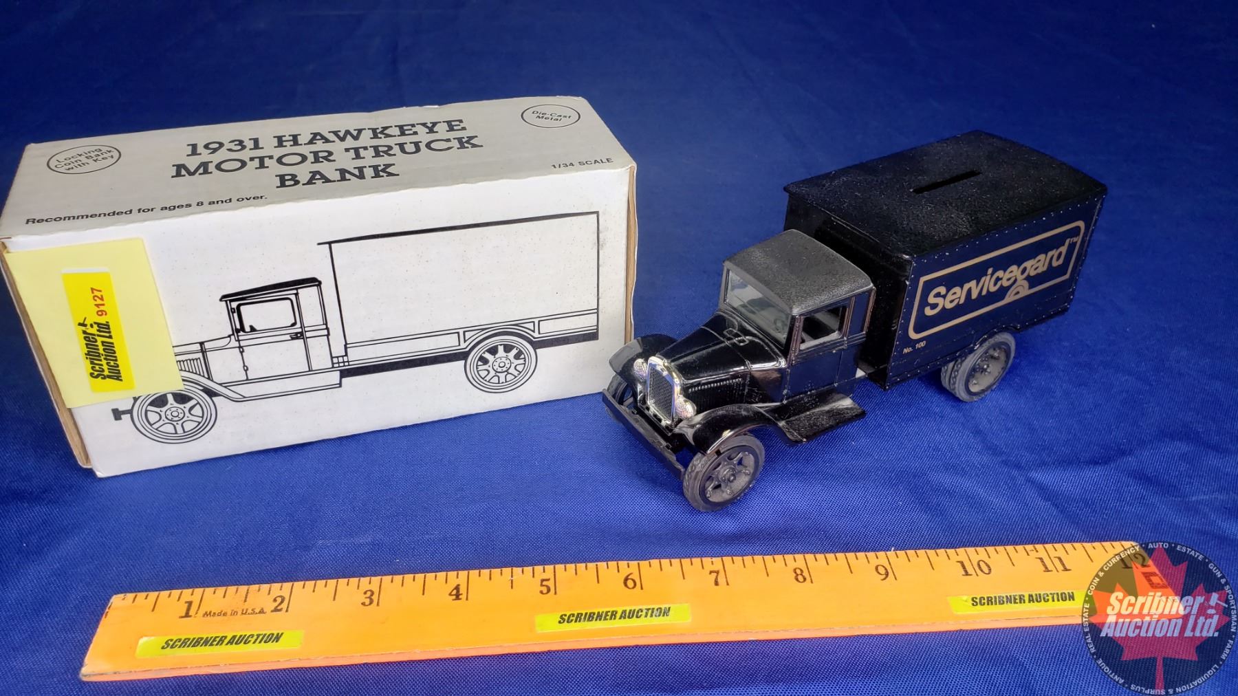 Locking Coin Bank w/Key : 1931 Hawkeye Motor Truck Bank Servicegard Dealer Award (0043) (Scale: 1/34)