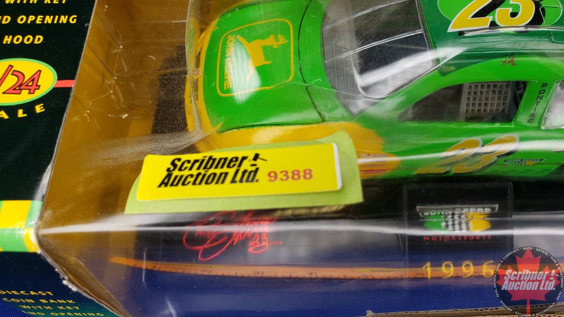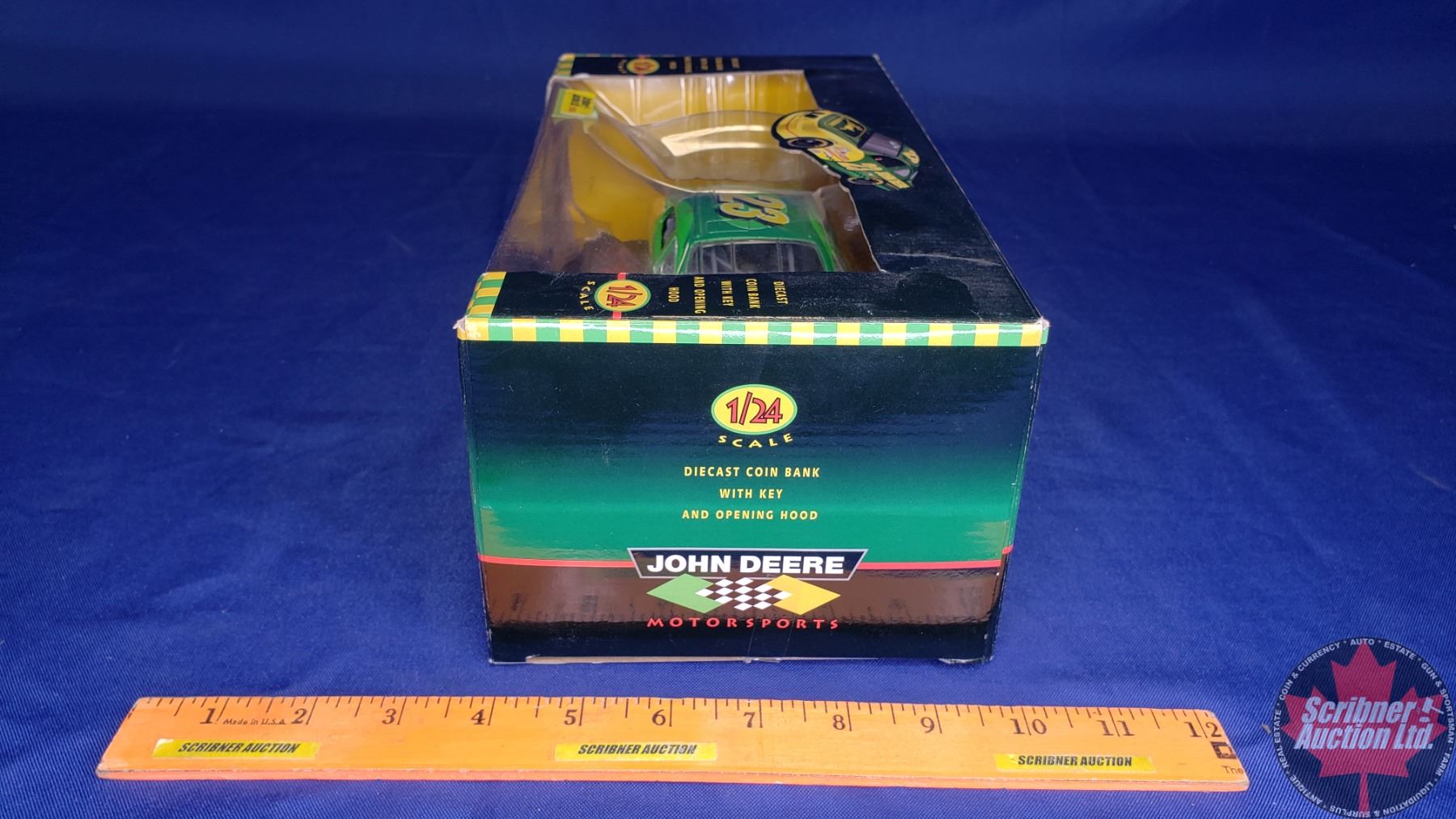 Locking Coin Bank w/Key : John Deere Motorsport #23 Race Car 1996 (Scale: 1/24)