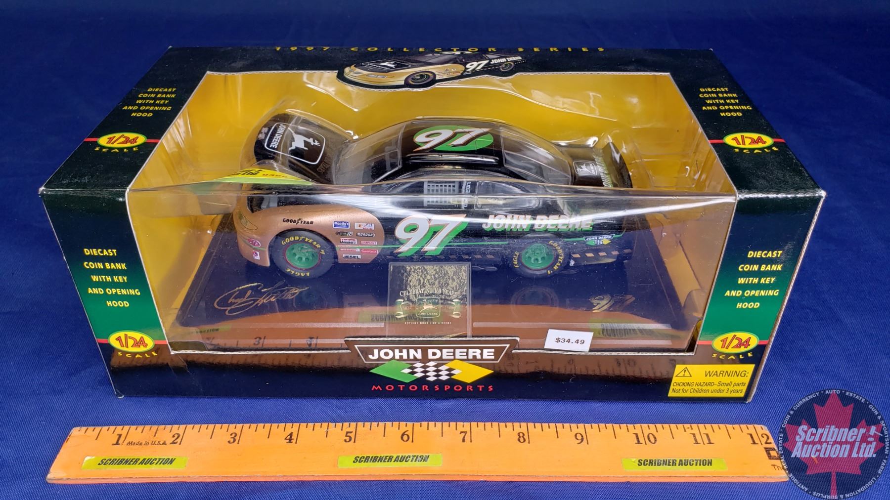 Locking Coin Bank w/Key : John Deere Motorsport #97 Race Car 1997 Collector Series (Scale: 1/24)