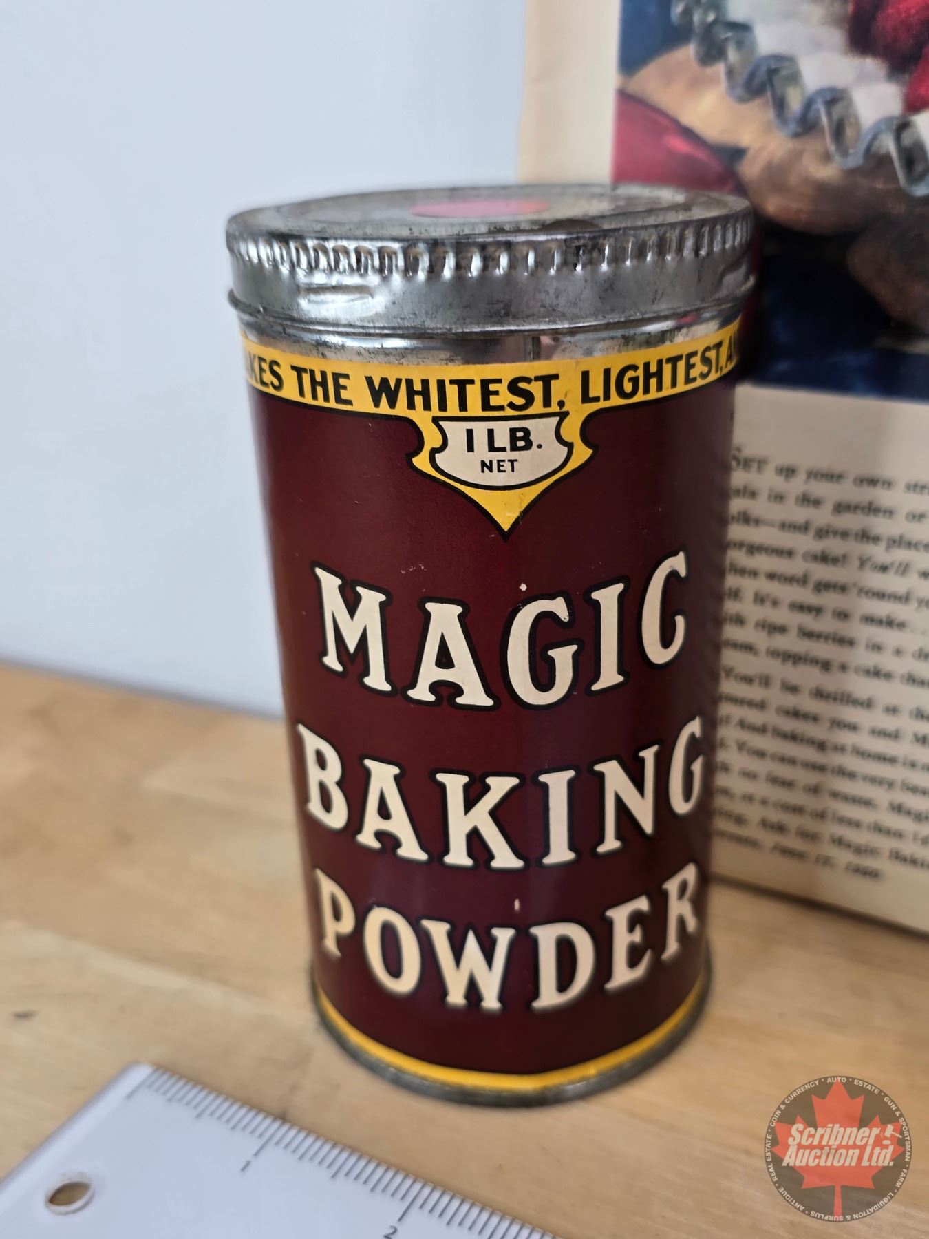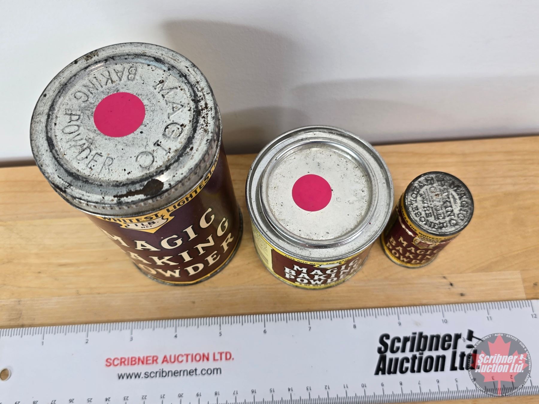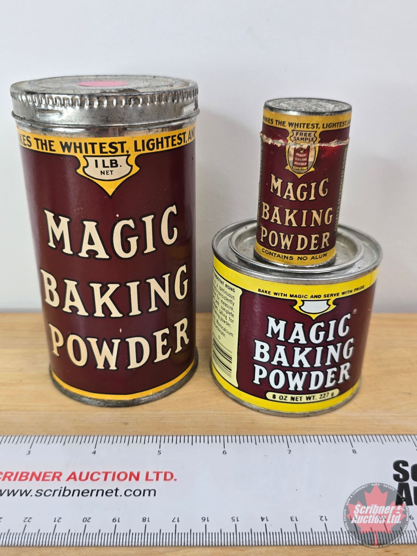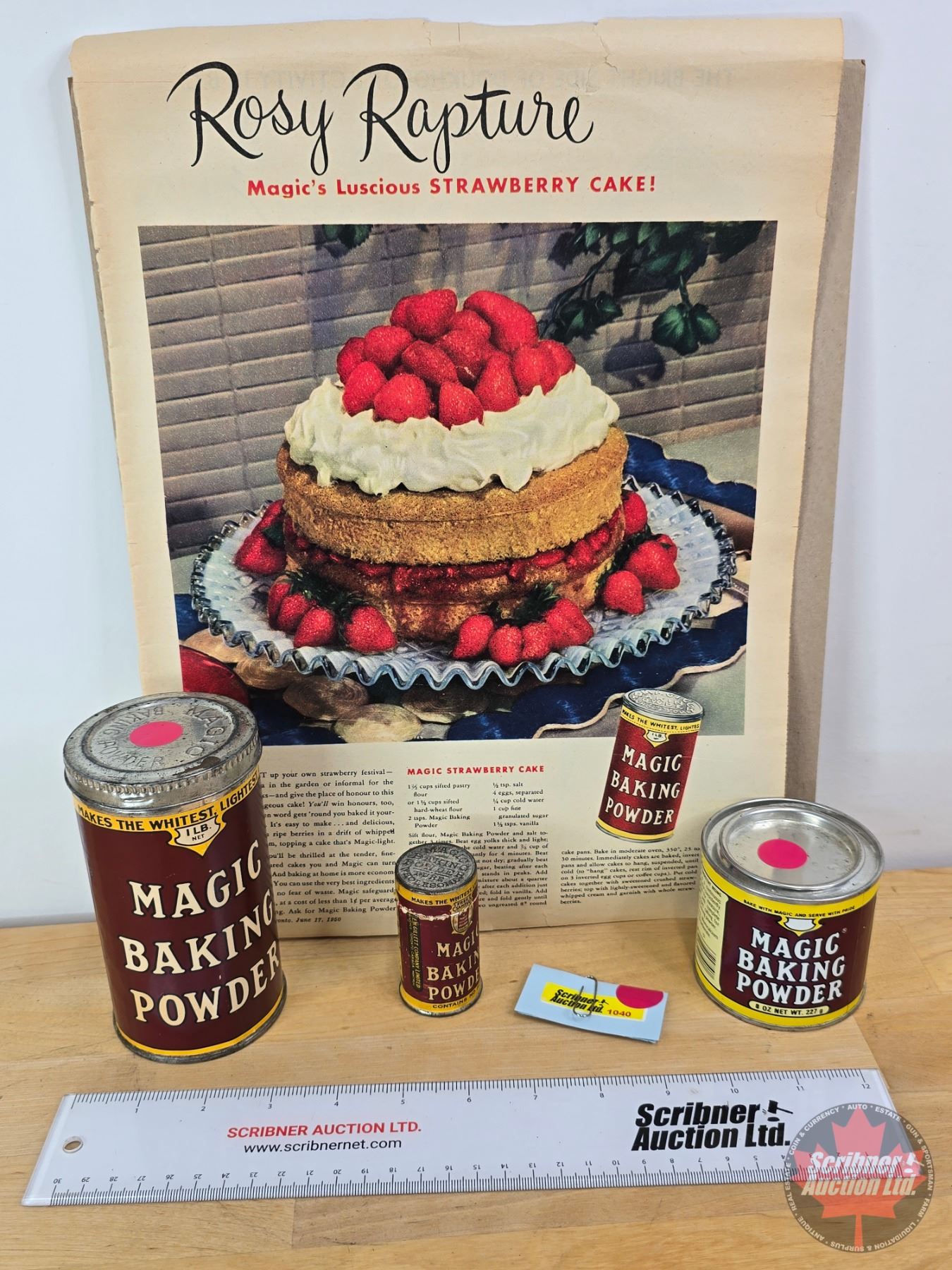 MAGIC BAKING POWDER Collector Combo: Tins (3) & Advertisement