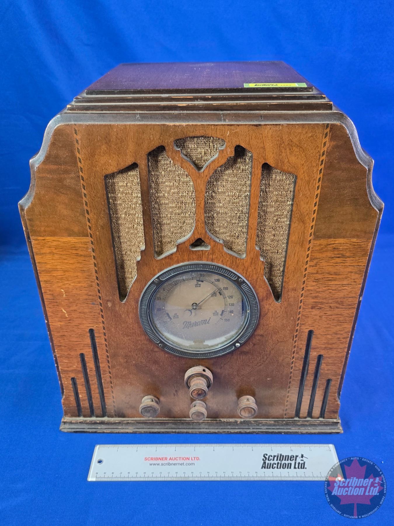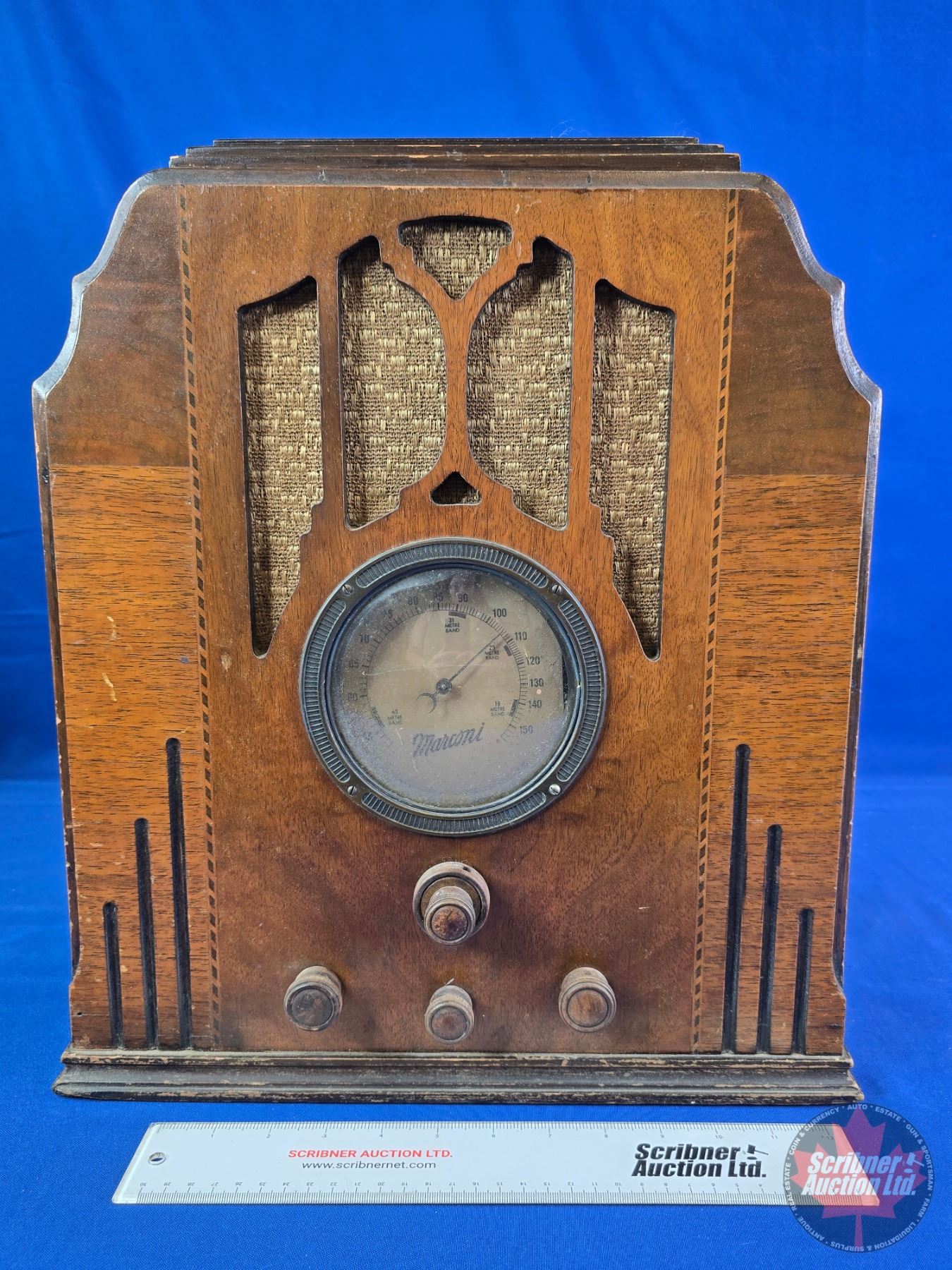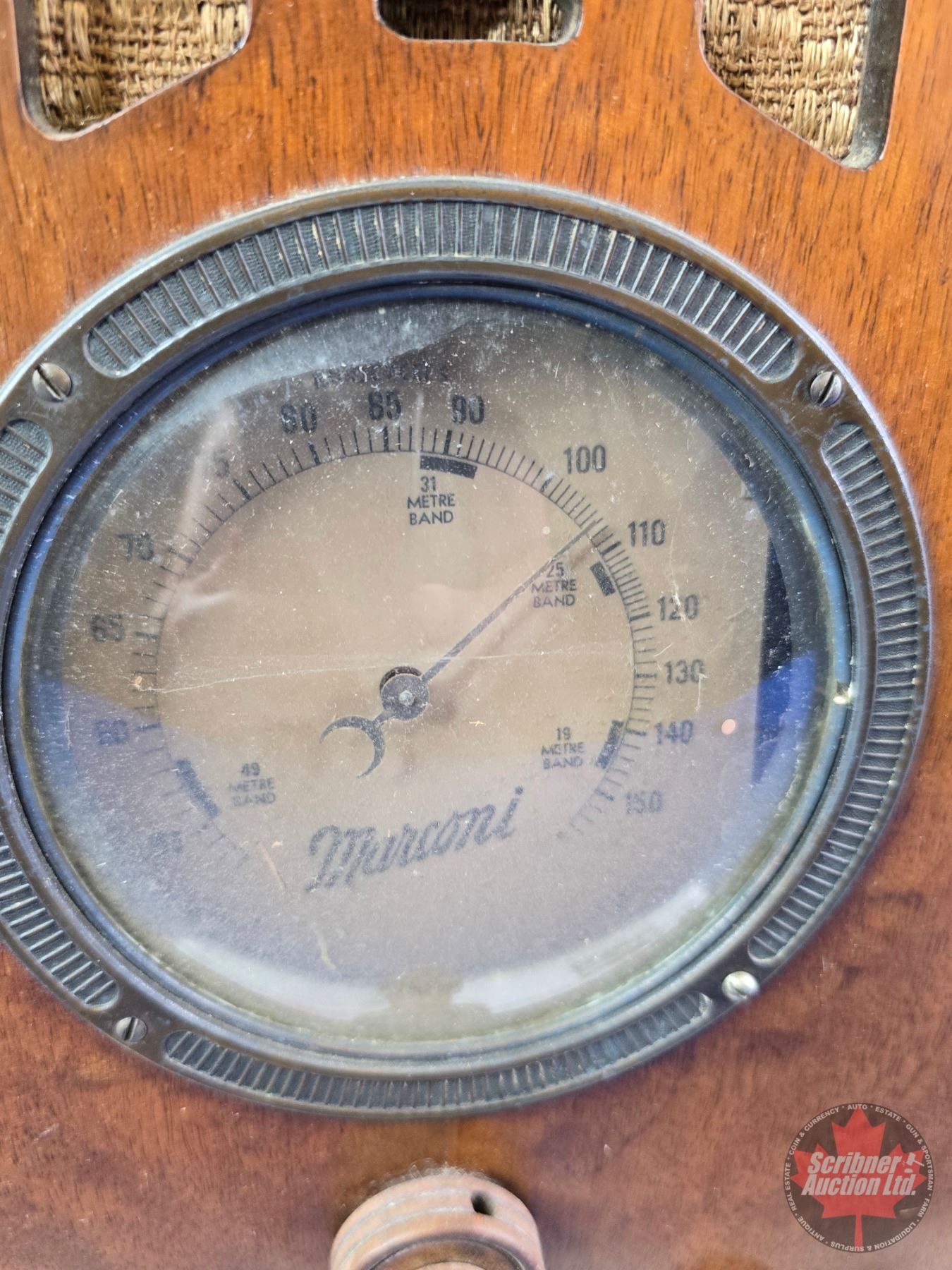 MARCONI Model 49 : Table Top Wood Box Radio : Convex Glass : Wood Knobs