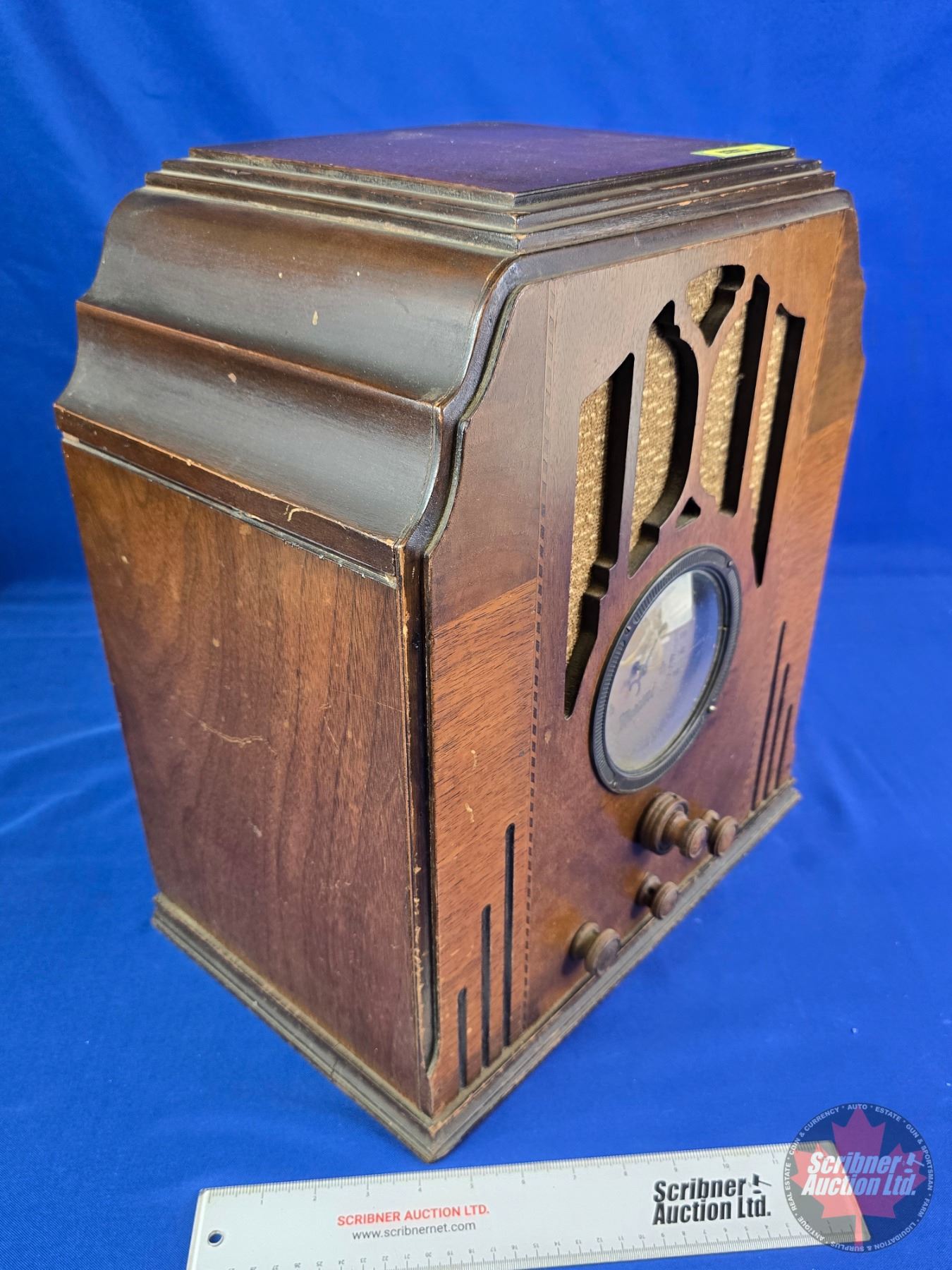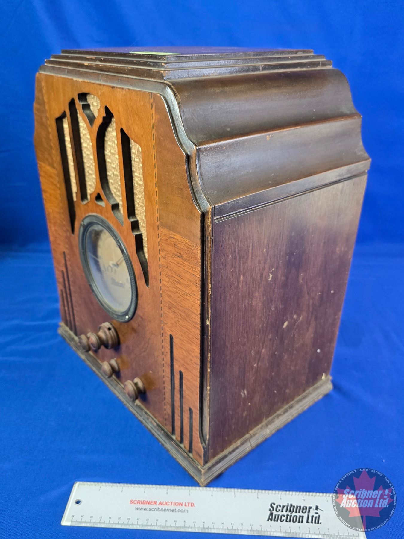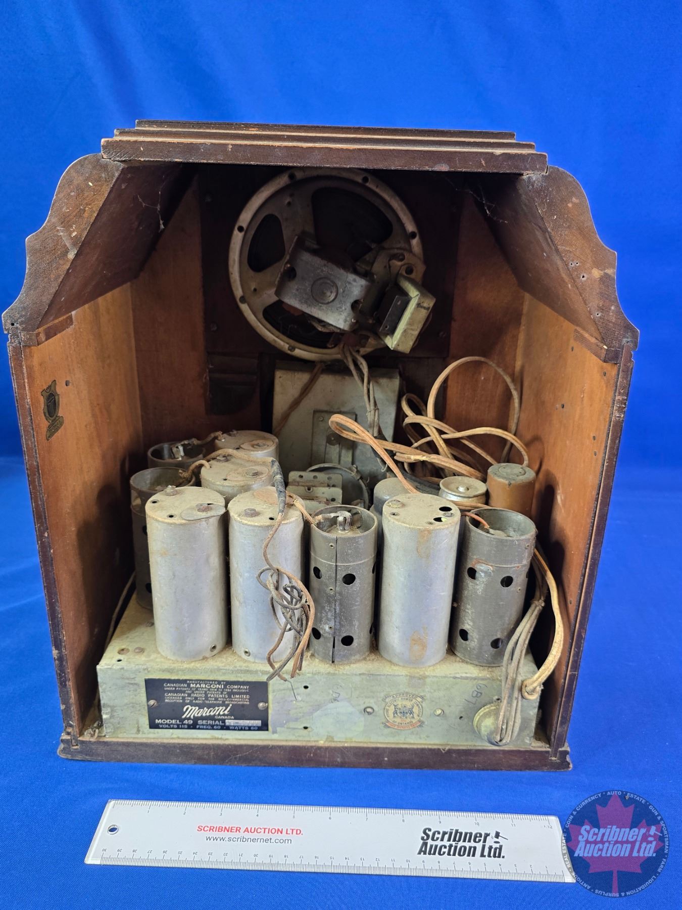 MARCONI Model 49 : Table Top Wood Box Radio : Convex Glass : Wood Knobs