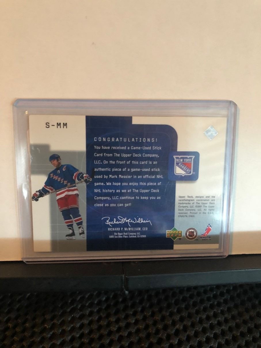MARK MESSIER 2001 UD TOP SHELF GAME USED STICK CARD