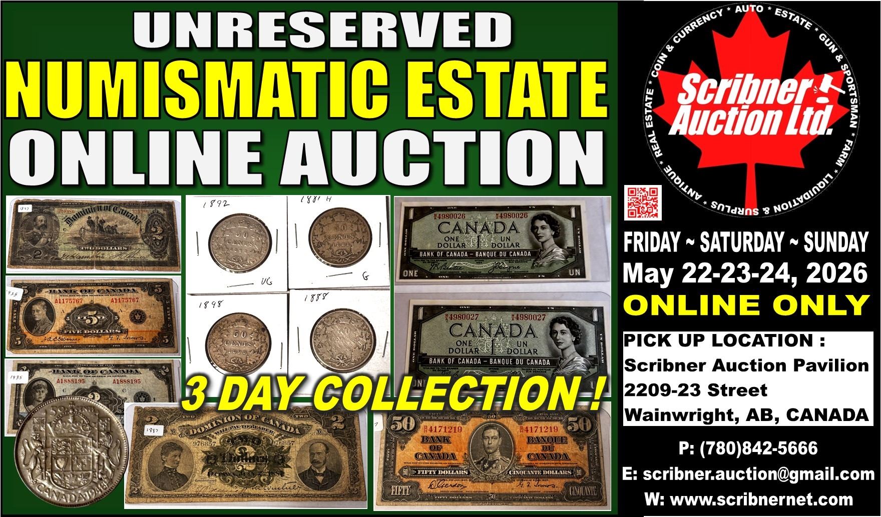 3. If you wish to pick up your items and pay with either Debit or Cash, this must be approved/arranged by Scribner Auction Ltd.