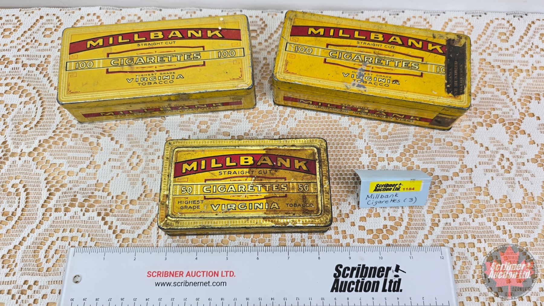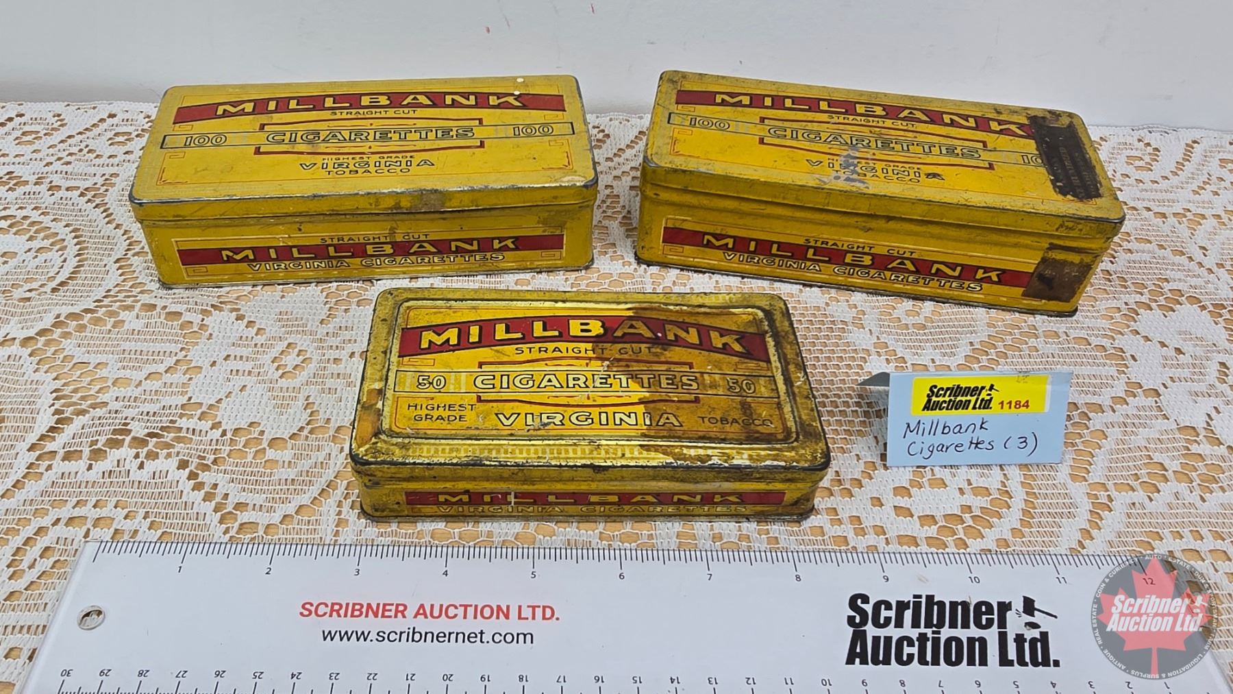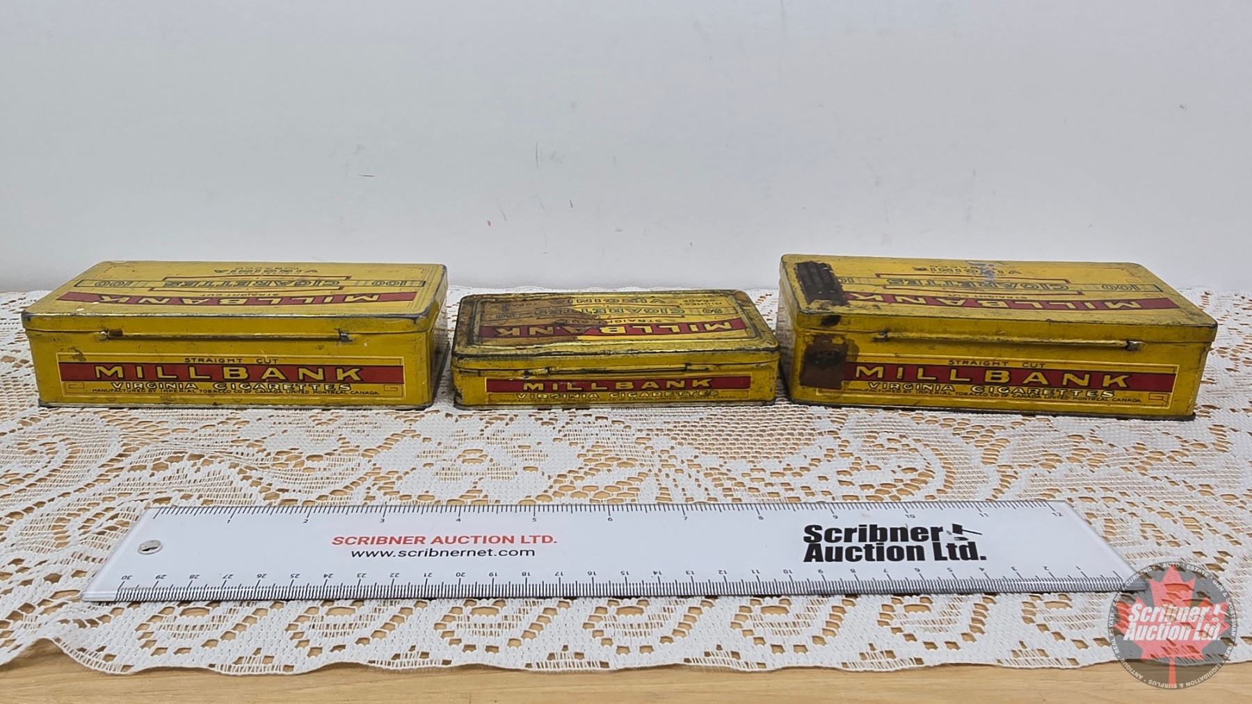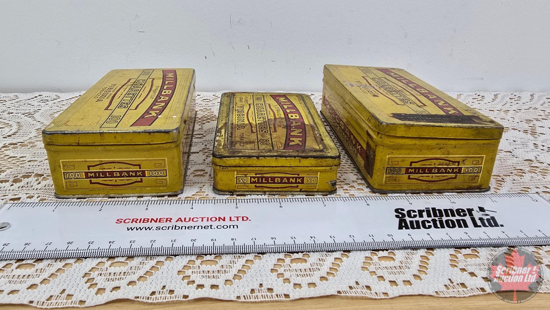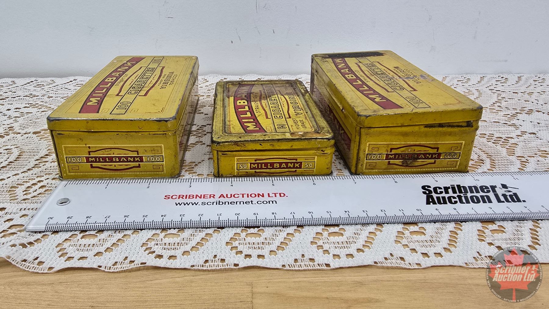 MILLBANK Tins (3) (Larger Tins Measure: 1-1/2"H x 6-1/2"W x 3"D) (SEE PICS!)