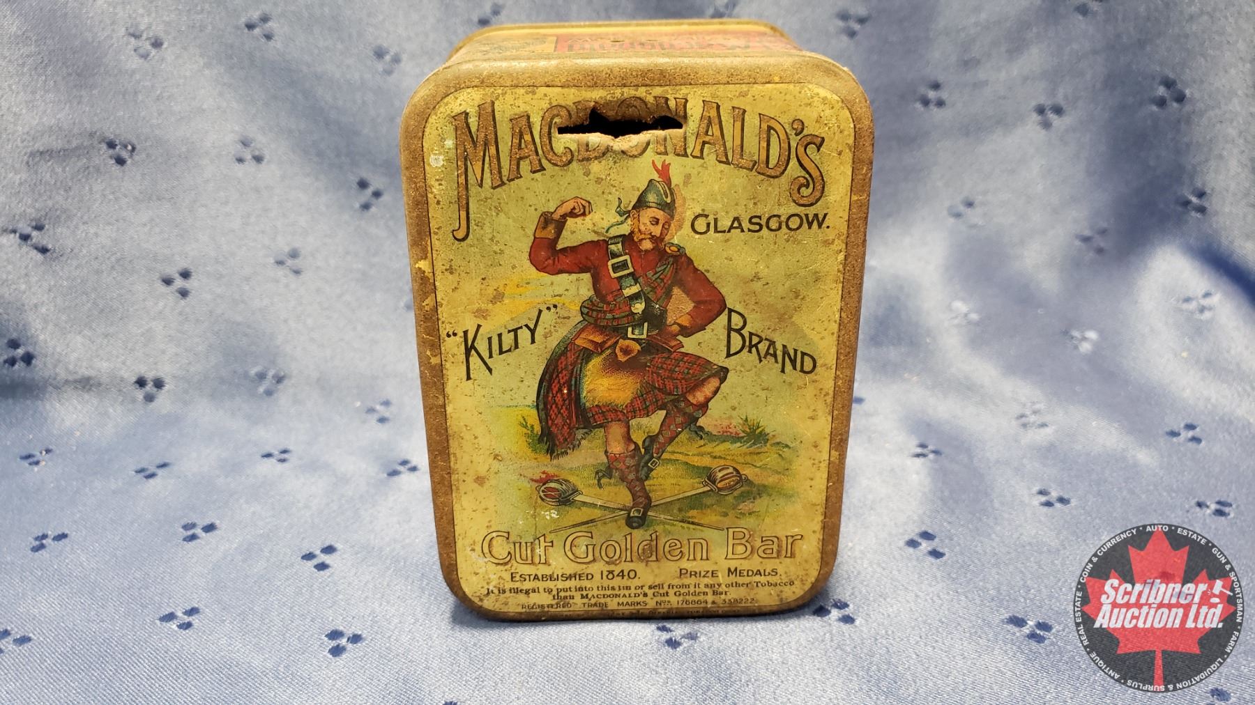 MacDonald's "Kilty" Brand Cut Golden Bar Tobacco Tin (2-3/4" x 5" x 3-1/2")