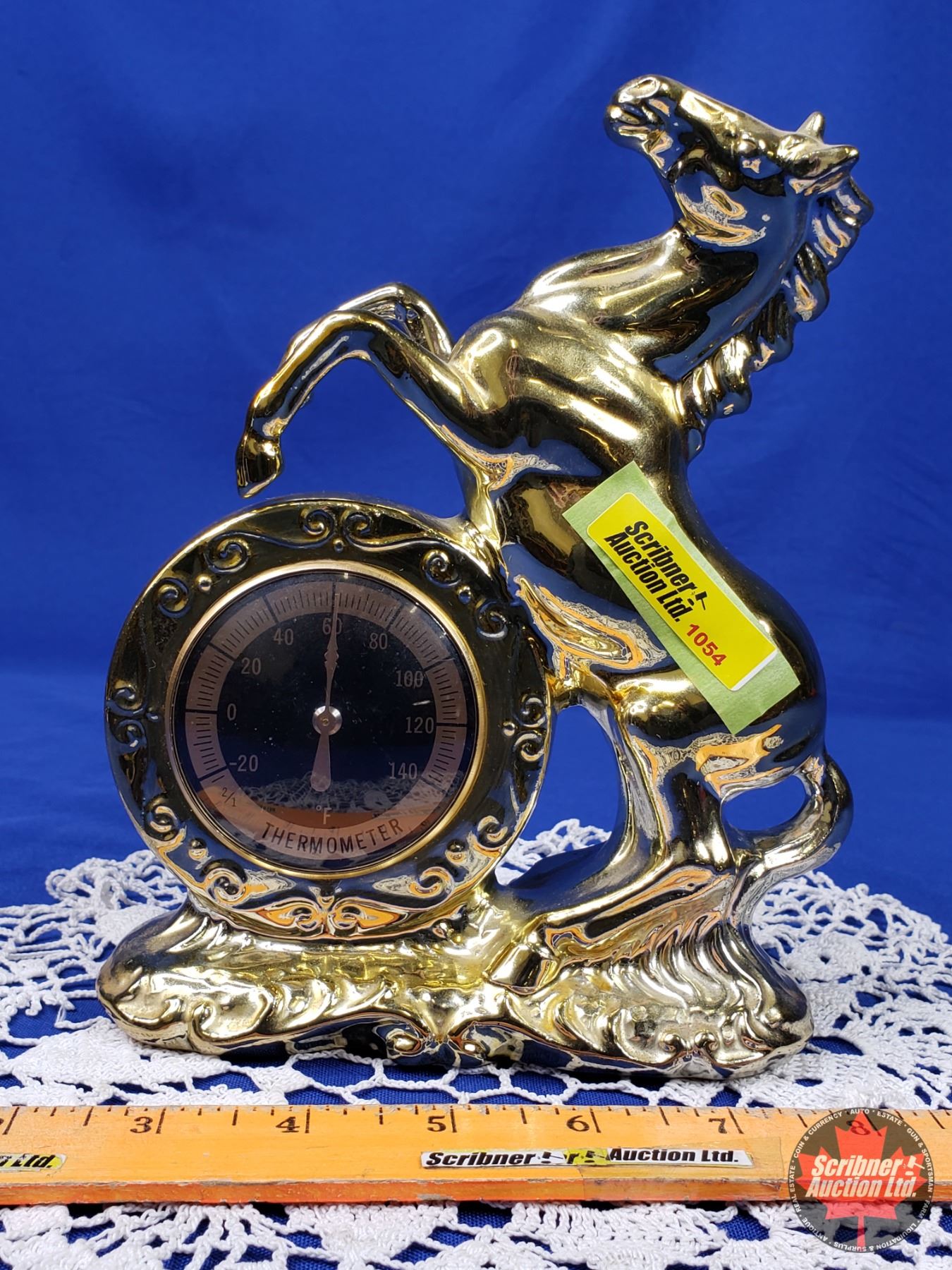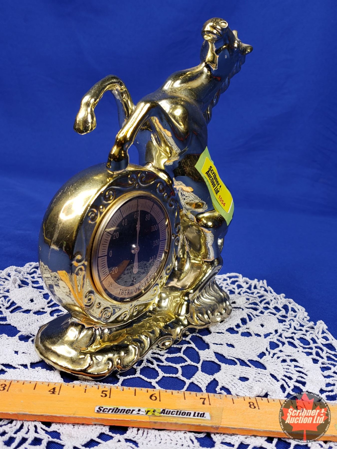 Mantle Thermometer / Horse (Gold Color) (8"H) (SEE PICS!)