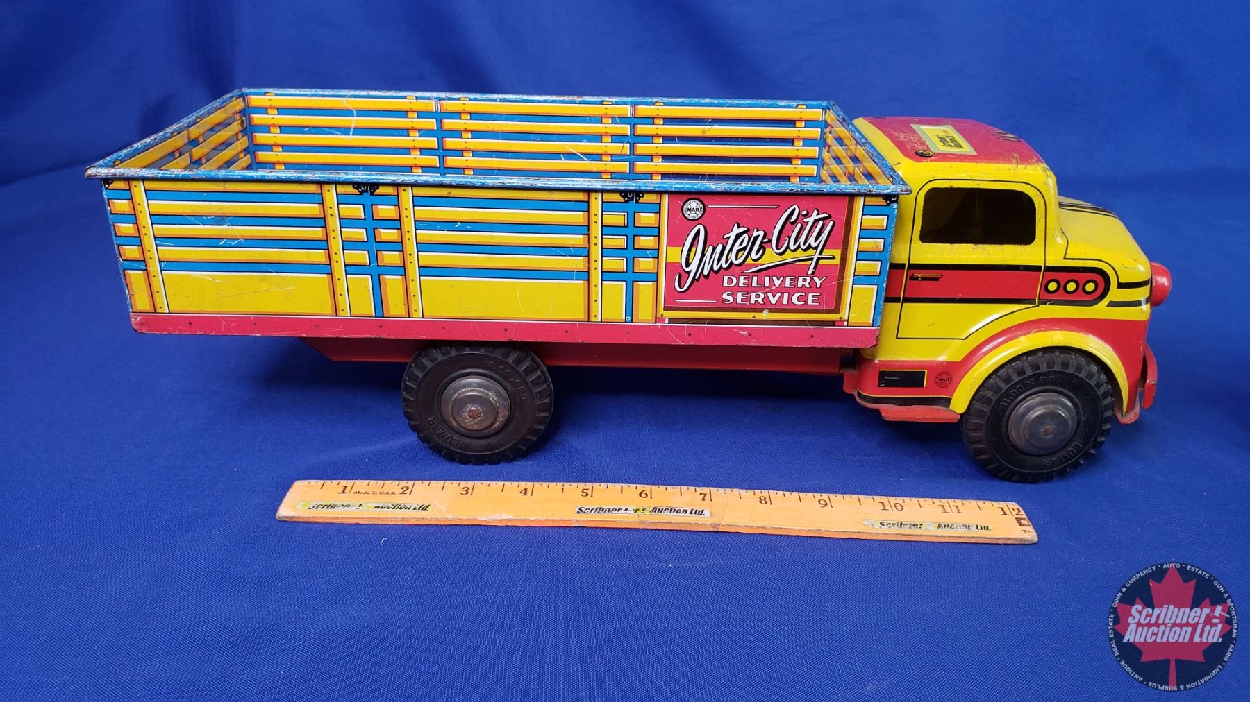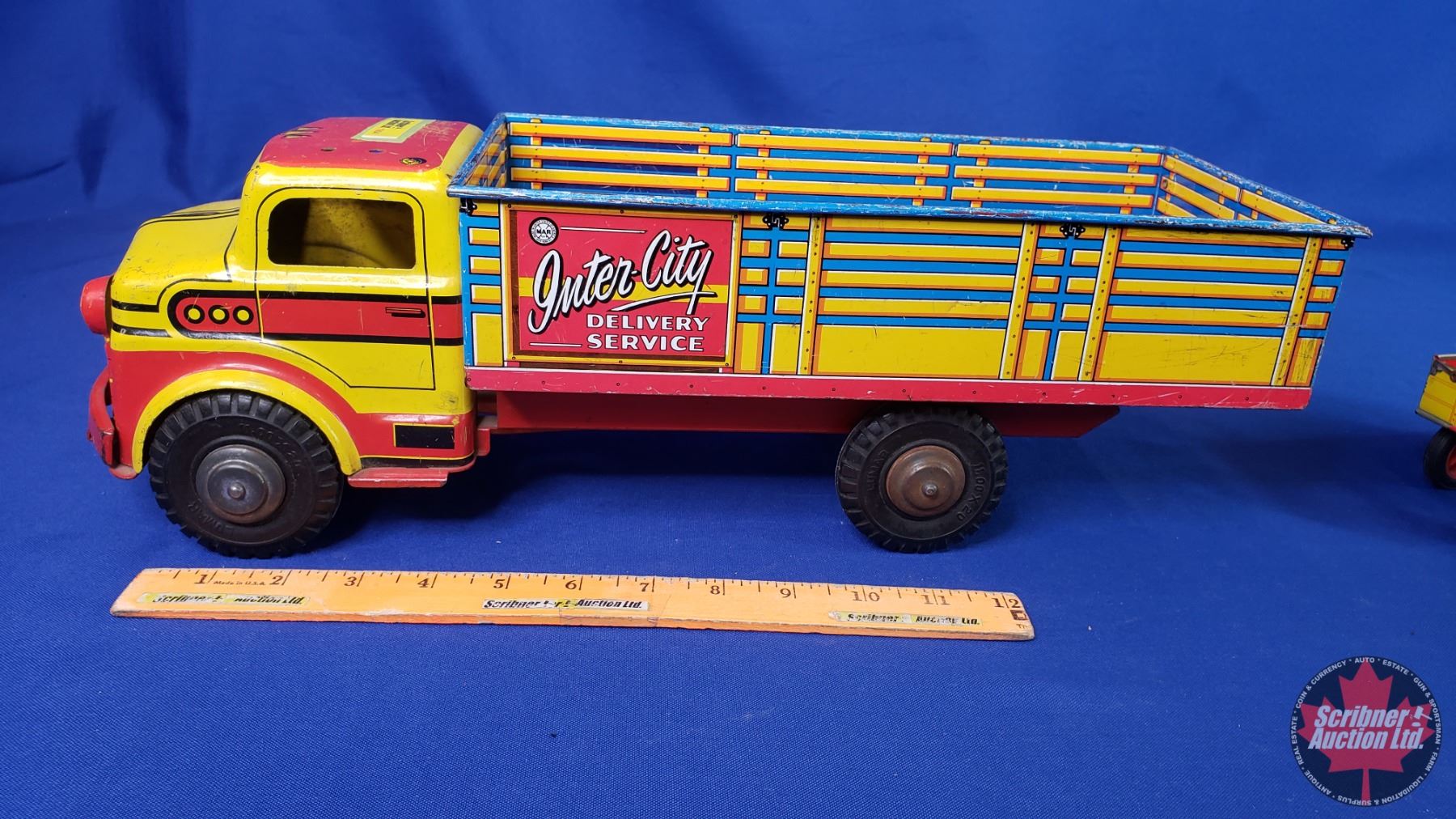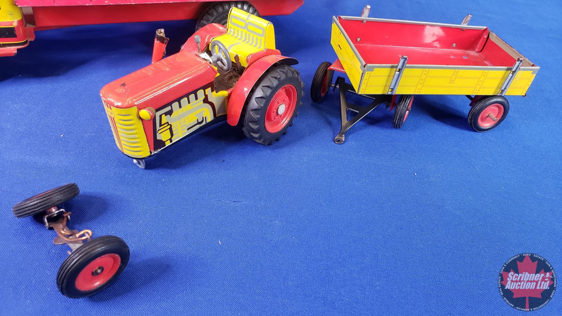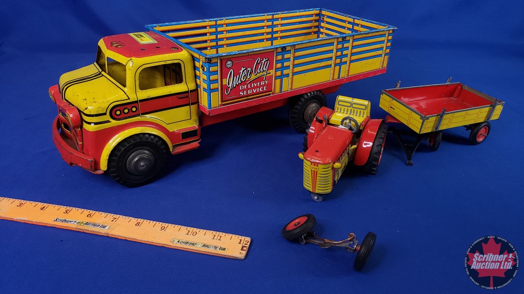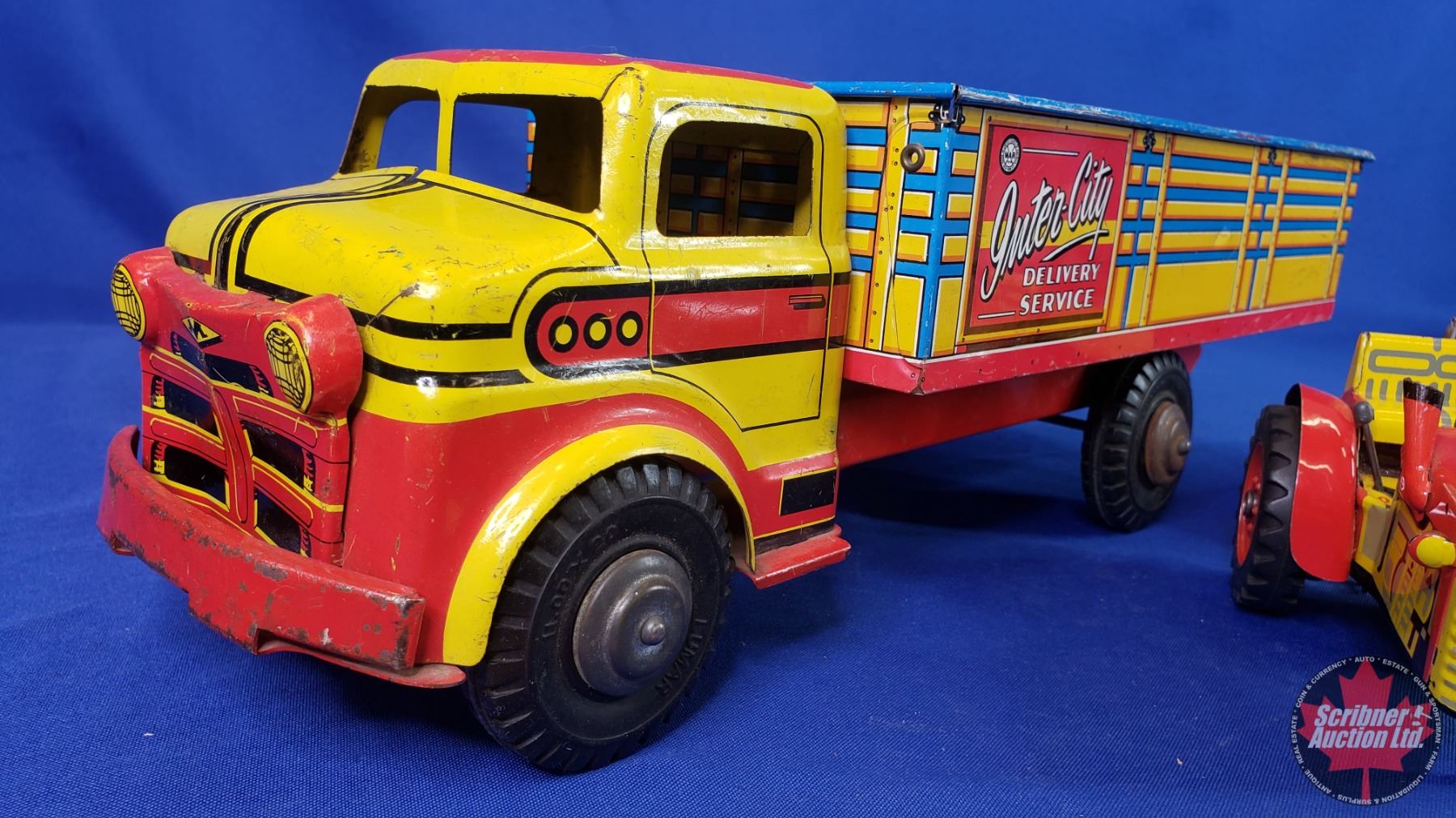 Marx/LUMAR Delivery Truck "Inter-City Delivery Service" + Tin Toy Tractor & Wagon (Truck Measures: 5-1/2"H x 6-1/2"W x 18"L) (SEE PICS!)