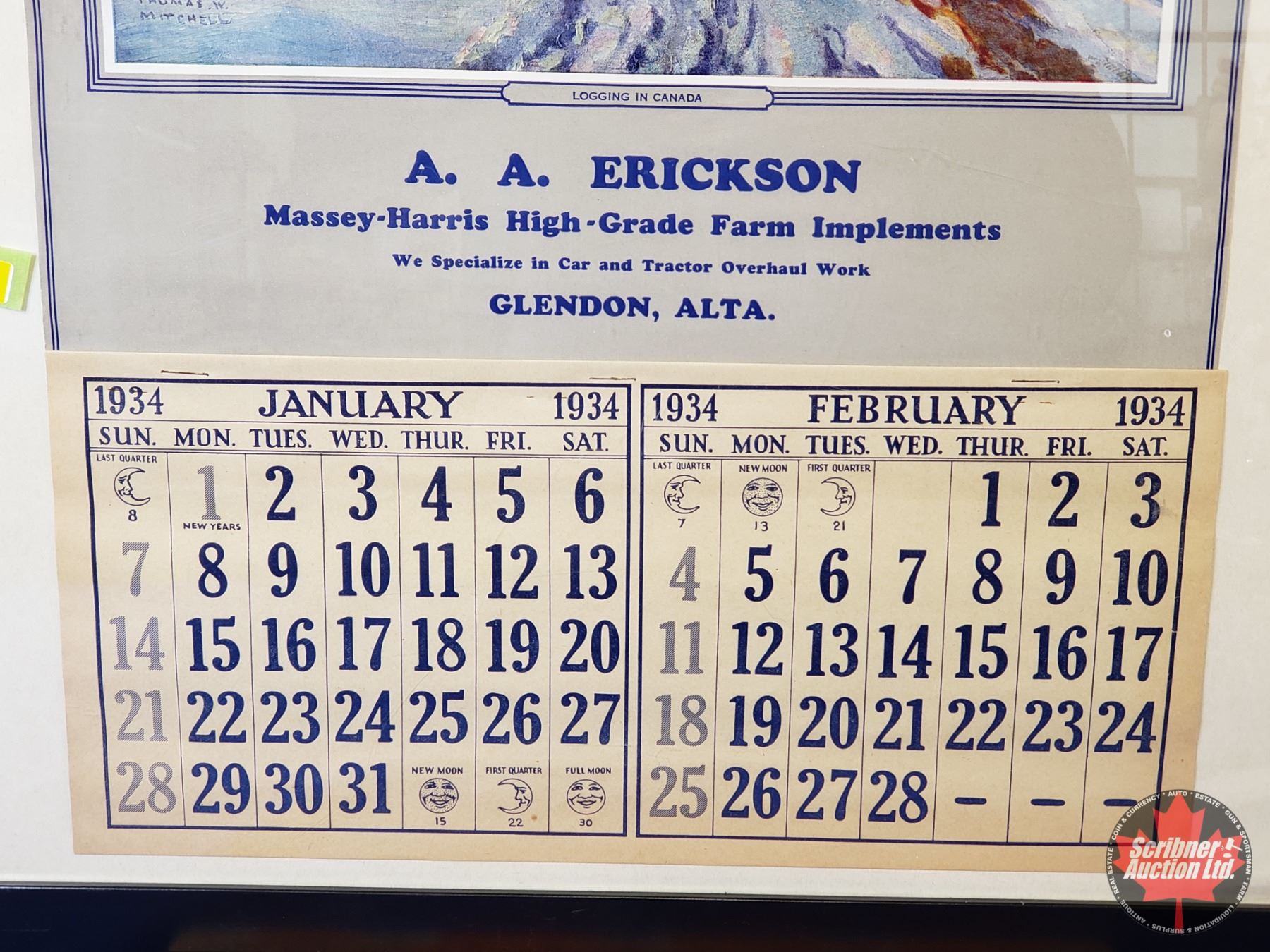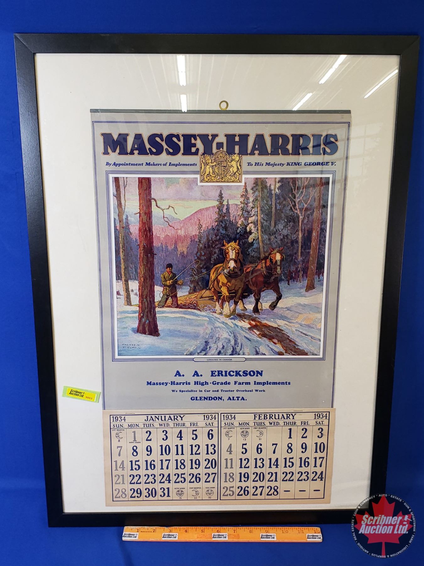 Massey-Harris Advertising Calendar 1934 (Framed) (Frame Measures: 29"H x 21"W) (SEE PICS!)