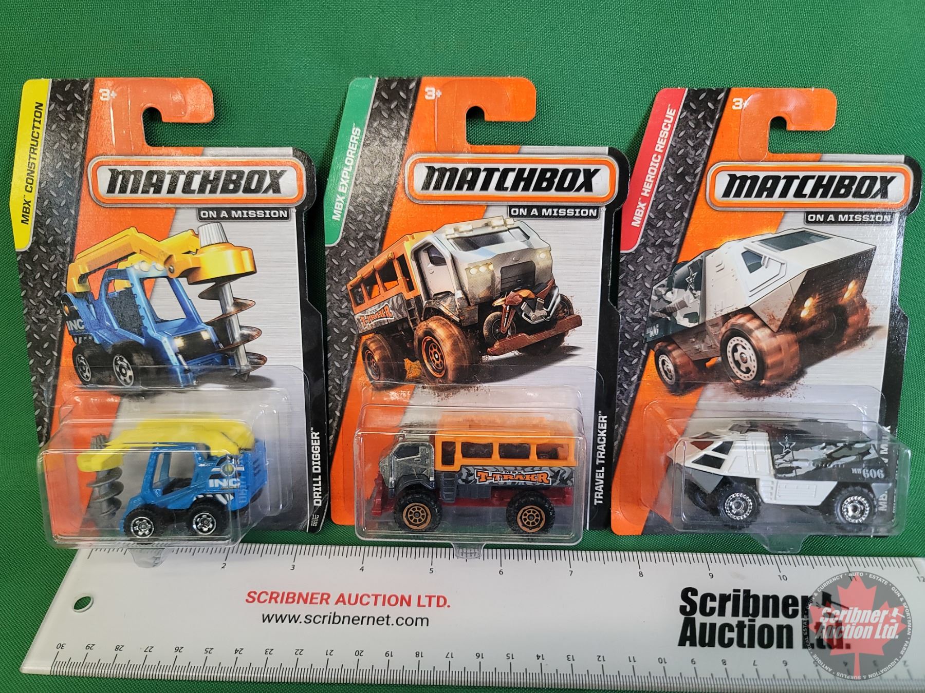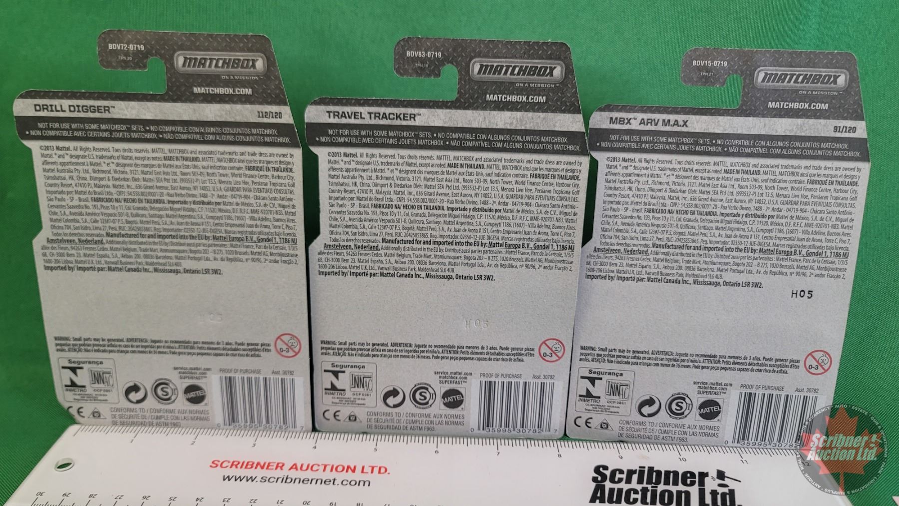 Matchbox (3) : On A Mission (c.2013 Mattel) - Drill Digger - Travel Tracker - MBX ARV M.A.X  (SEE PI